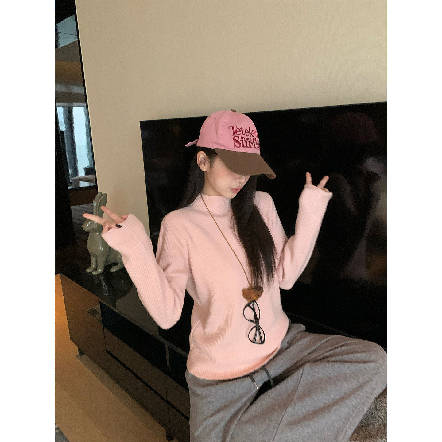 苏三三粉色毛衣冬季加绒女2025新款内搭加厚打底衫一体绒保暖上衣