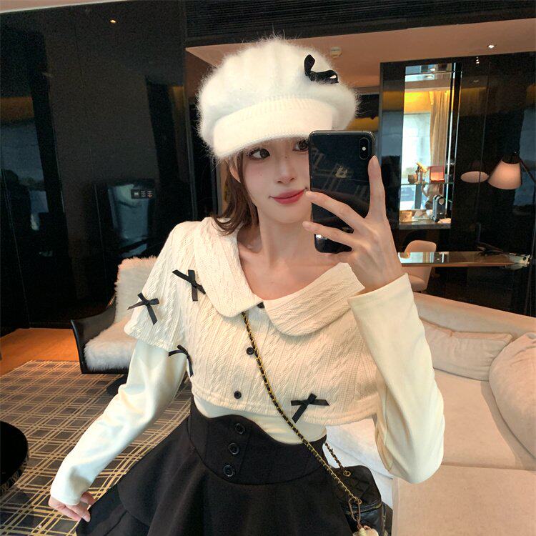 实拍 胖m时尚套装秋冬慵懒风短裙款休闲千金风秋季
