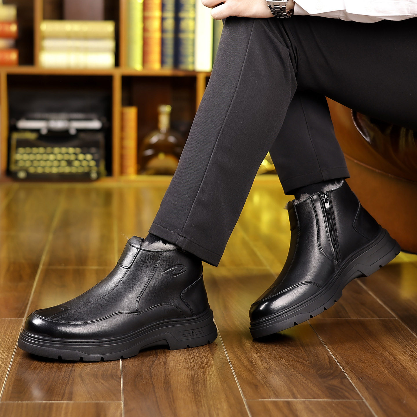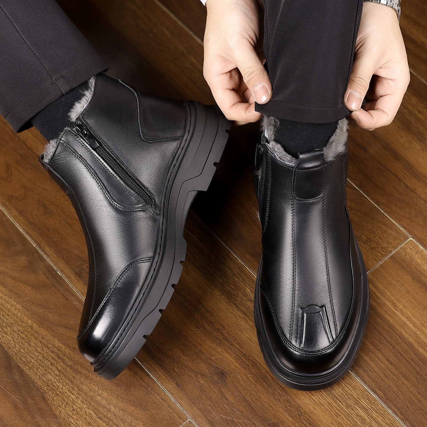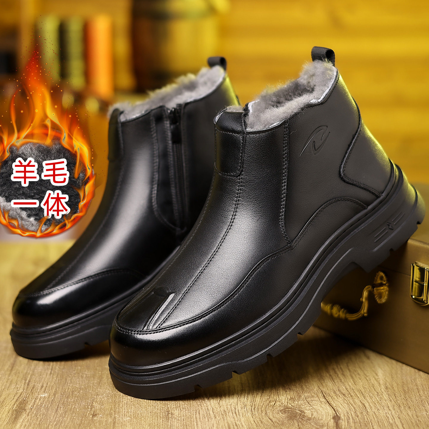 高端男士2025冬季新款真皮保暖棉鞋羊毛一体休闲雪地靴高帮男鞋