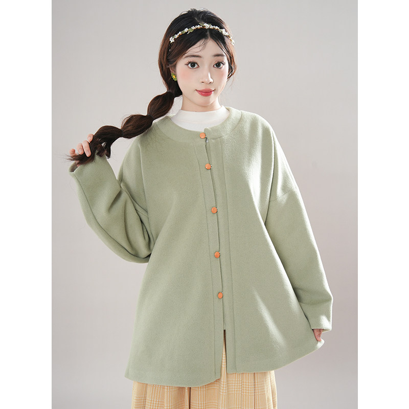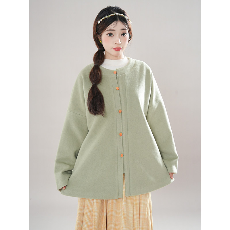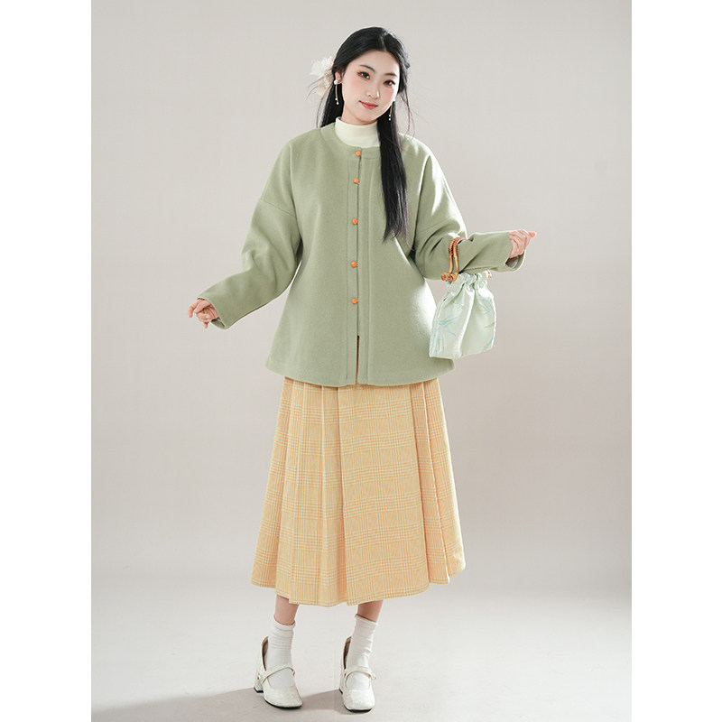 首页> 女装> 松山煮雨 立领圆领弓袋袖毛呢外套女/松紧马面裙秋冬季国风两件套