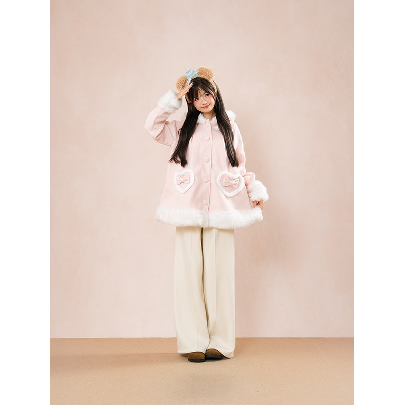 软萌兔兔 2025冬季新款兔耳大衣甜美软妹lolita小个子毛呢外套