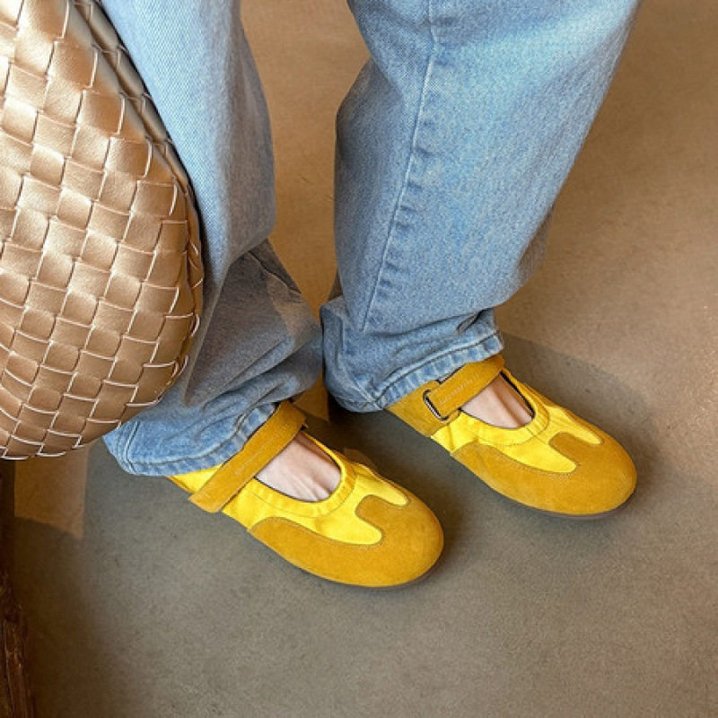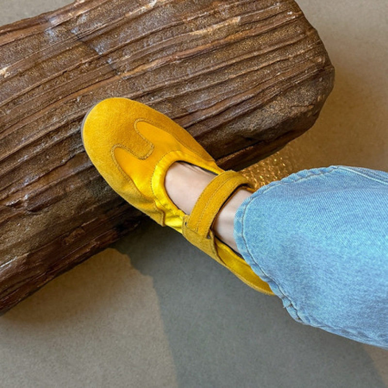 超软德训鞋不累脚的单鞋黄色休闲平底真皮玛丽珍女鞋软底芭蕾舞鞋