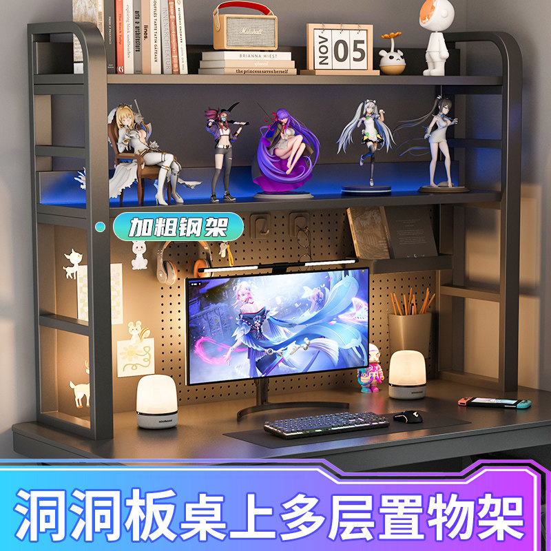 电脑桌面多功能桌上收纳架家用书房多层稳固简约铁艺洞洞板置物架
