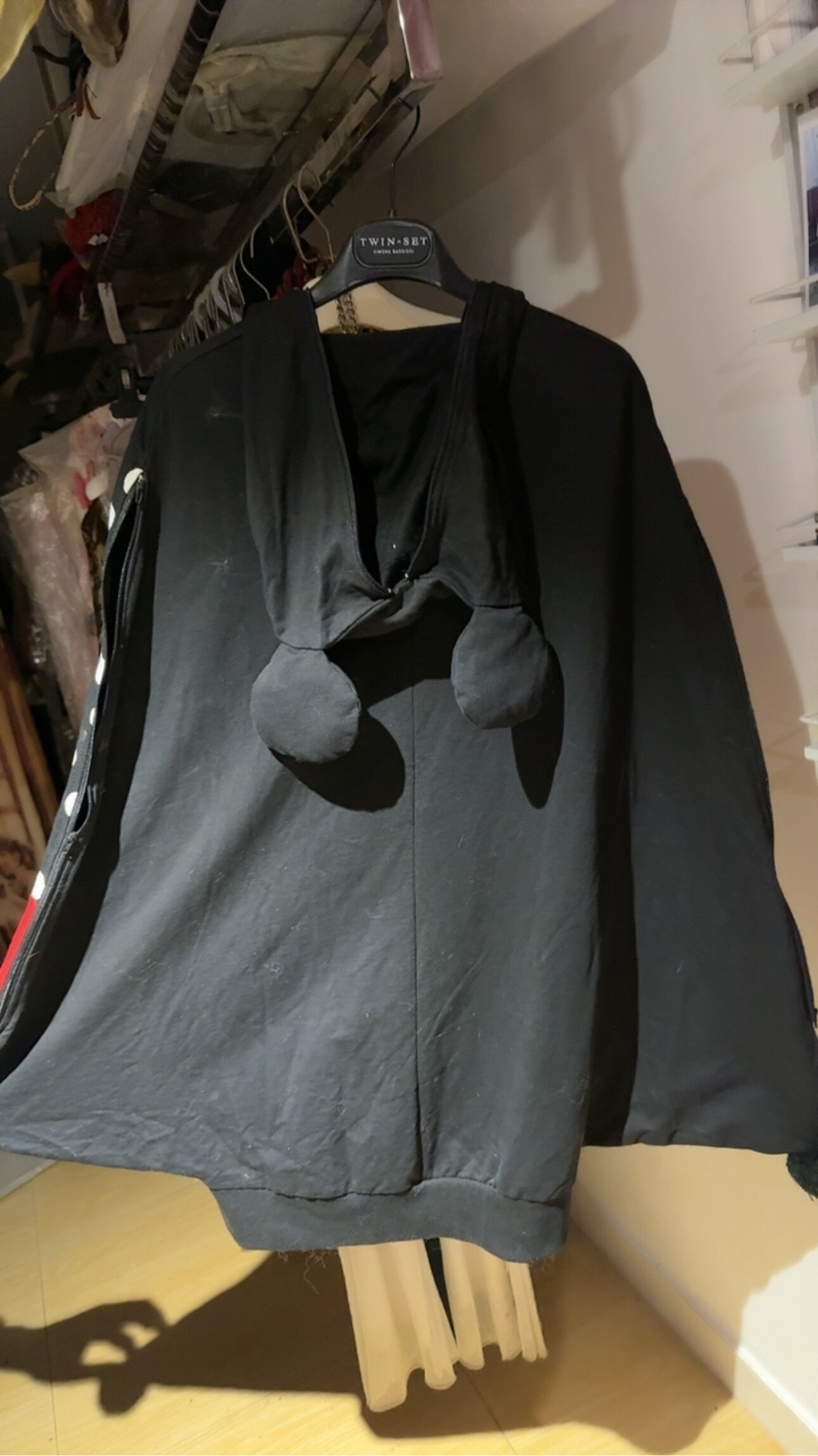 大码宽松米奇波点斗篷外套 慵懒风拼接撞色连帽开衫