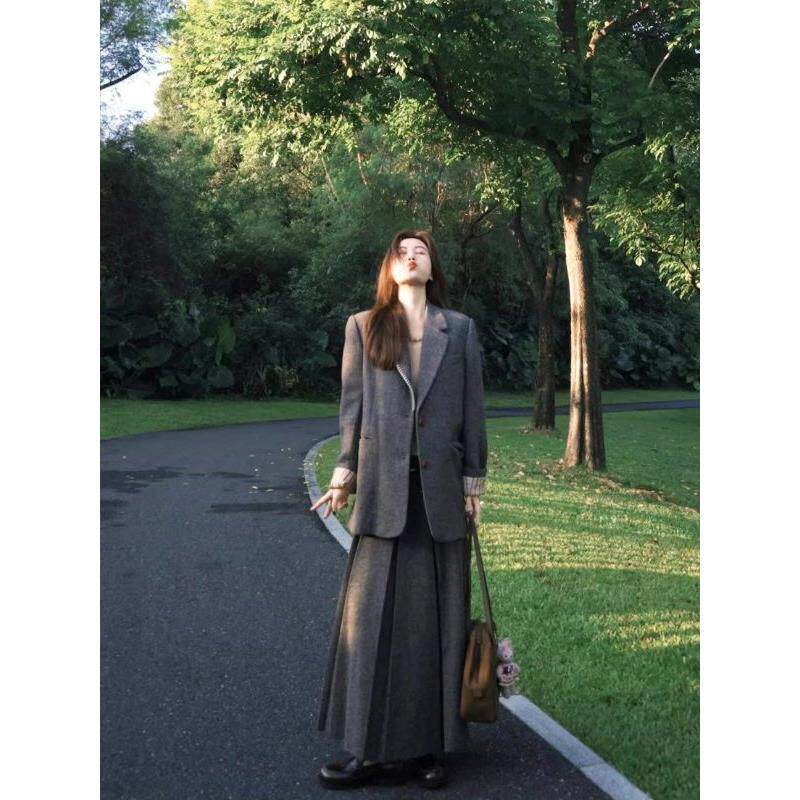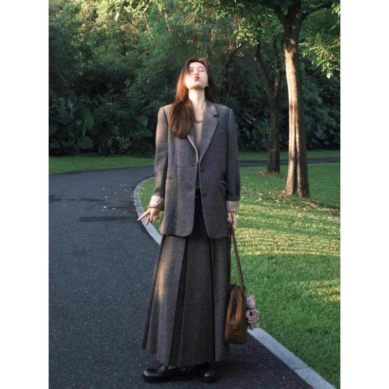 韩系大码女装胖mm秋冬显瘦呢子西装裙子两件套毛呢西服半身裙套装