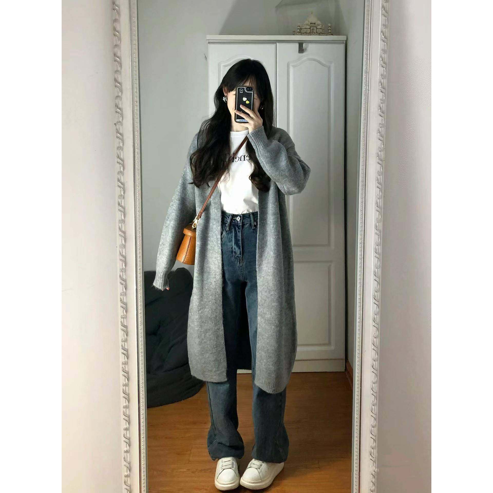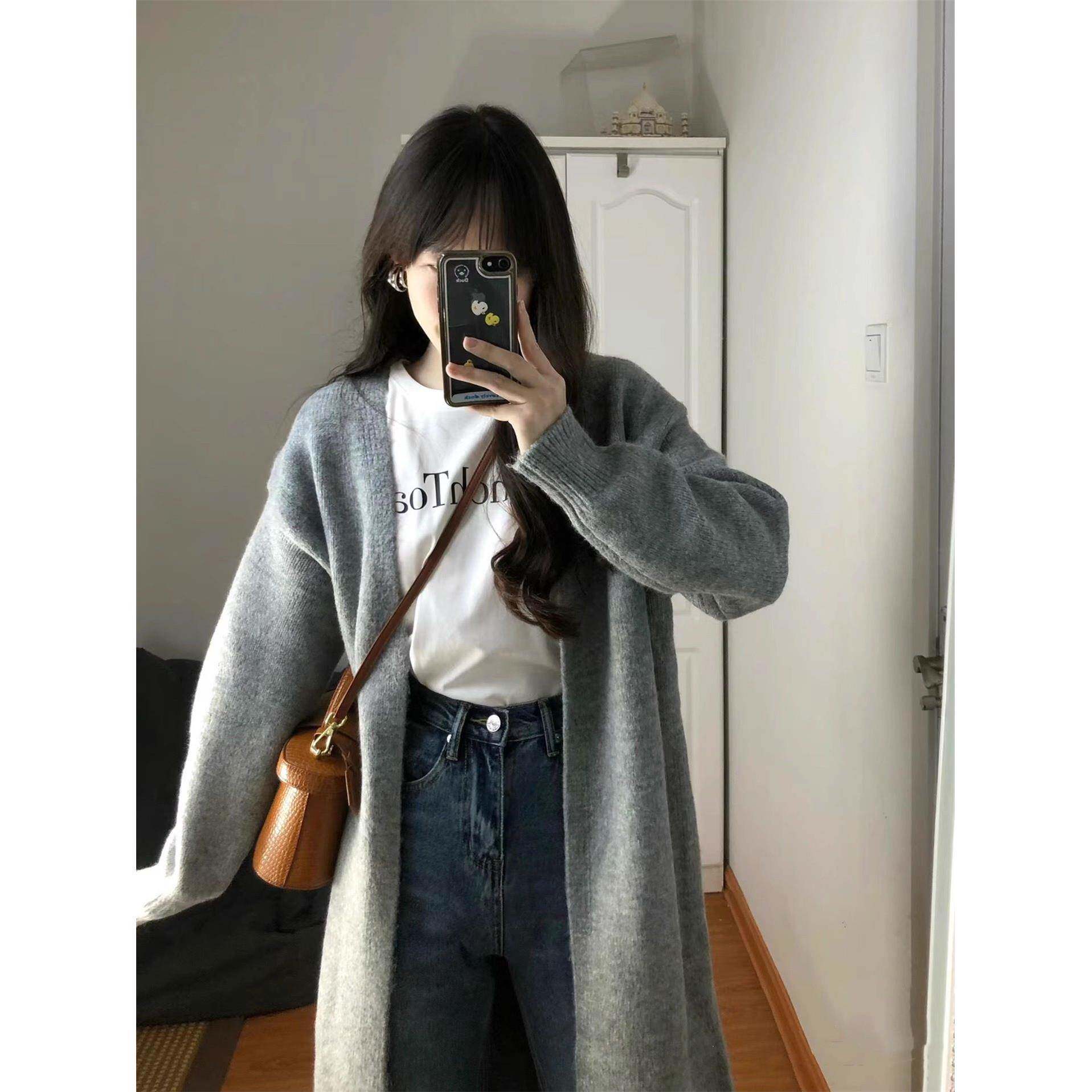 高级感!松瘦懒风慵外搭CIN开衫女软糯过显膝中长款毛衣外套春宽