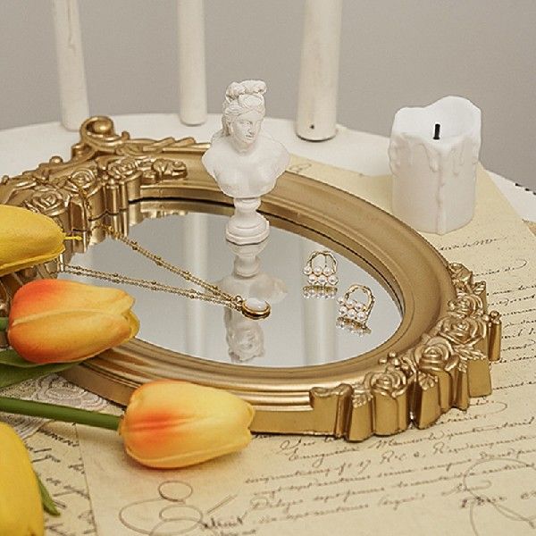 Cutelife Ins Nordic Gd Resin Small Round Table Mirror