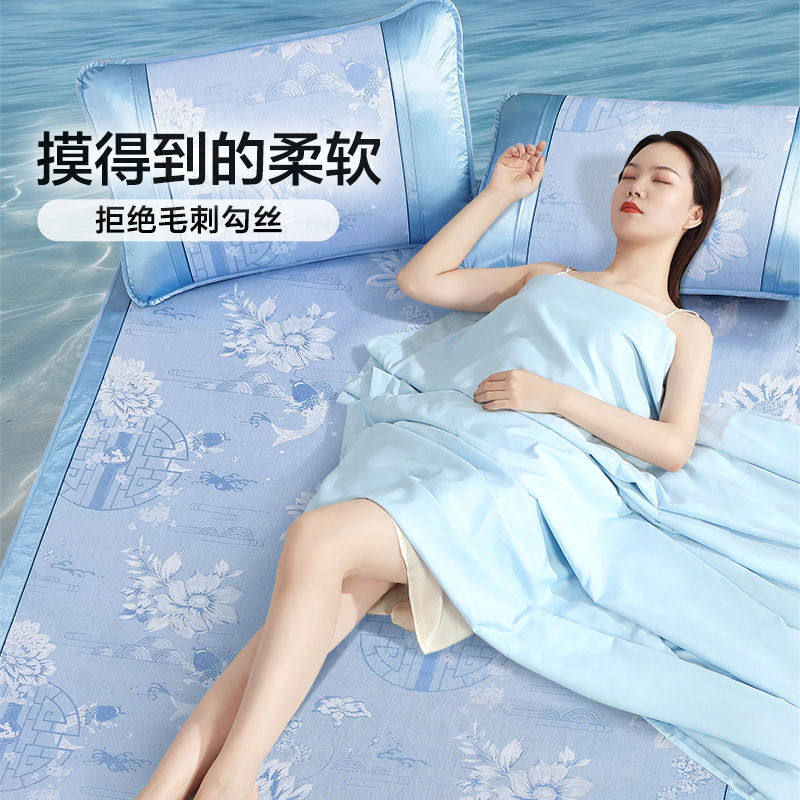 冰丝凉席夏季提花席子套件学生宿舍可折叠夏天空调家用凉席