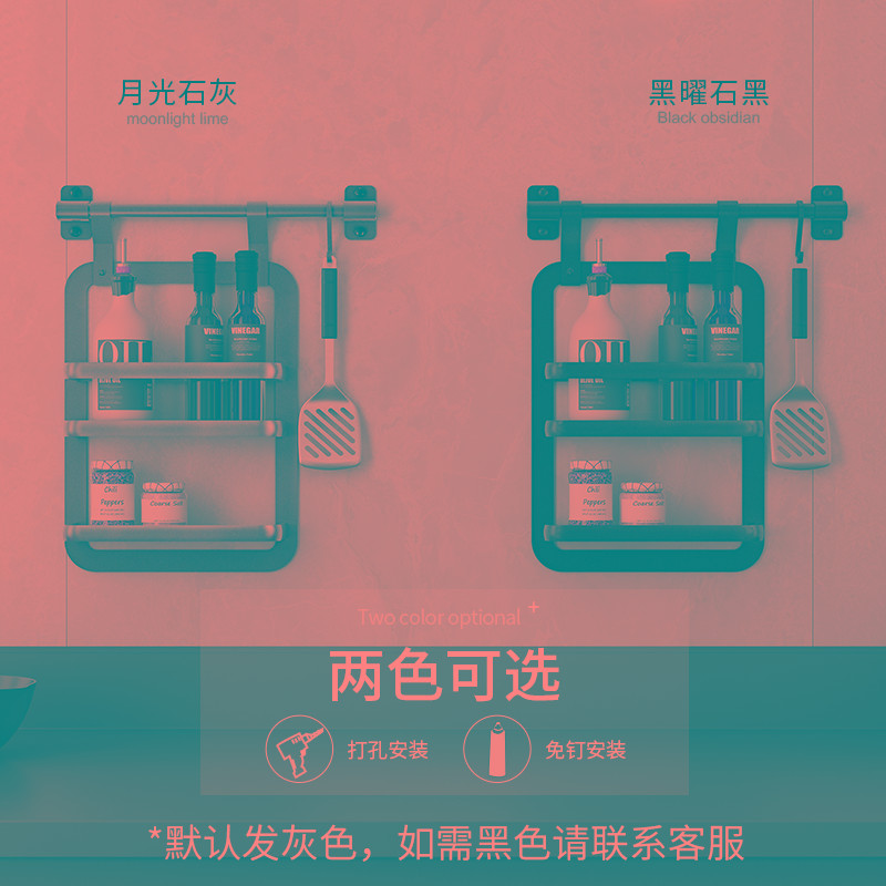 厨房置物架壁挂式免打孔挂杆挂架碗碟架刀架调料架挂件墙面收