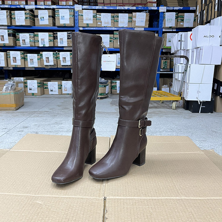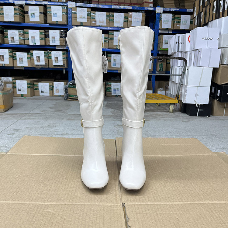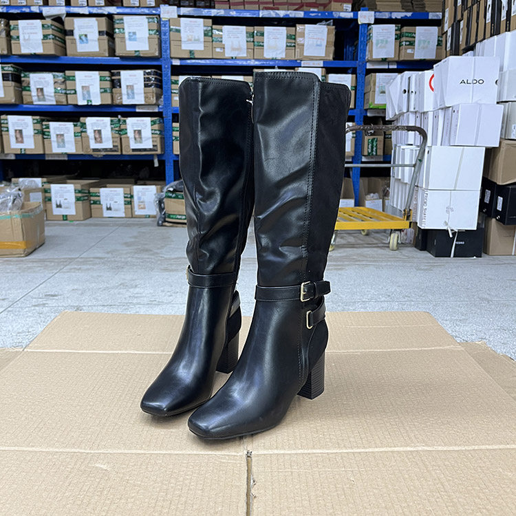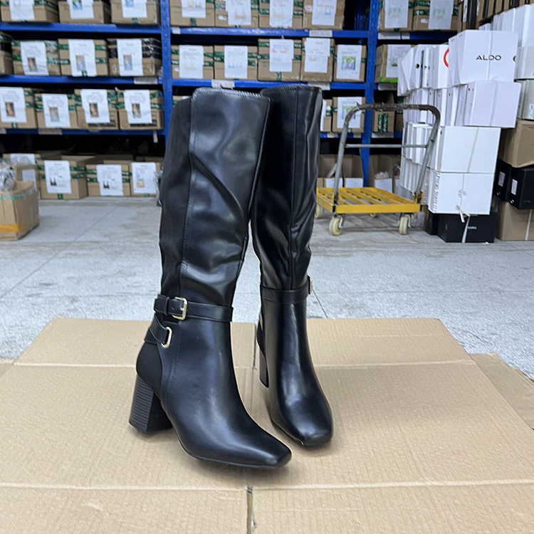 外贸原单欧美时尚显瘦侧拉链皮带方头粗跟高跟高长靴高筒靴骑士靴