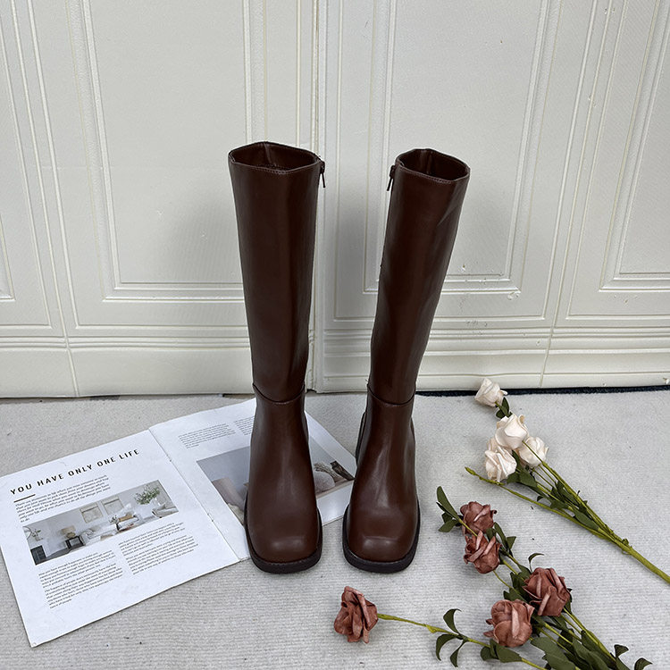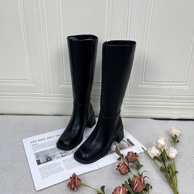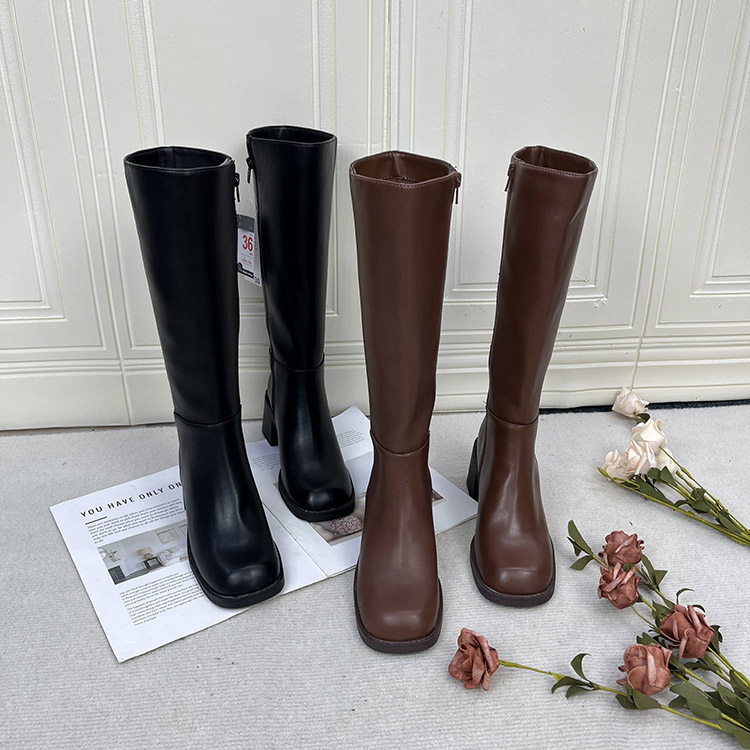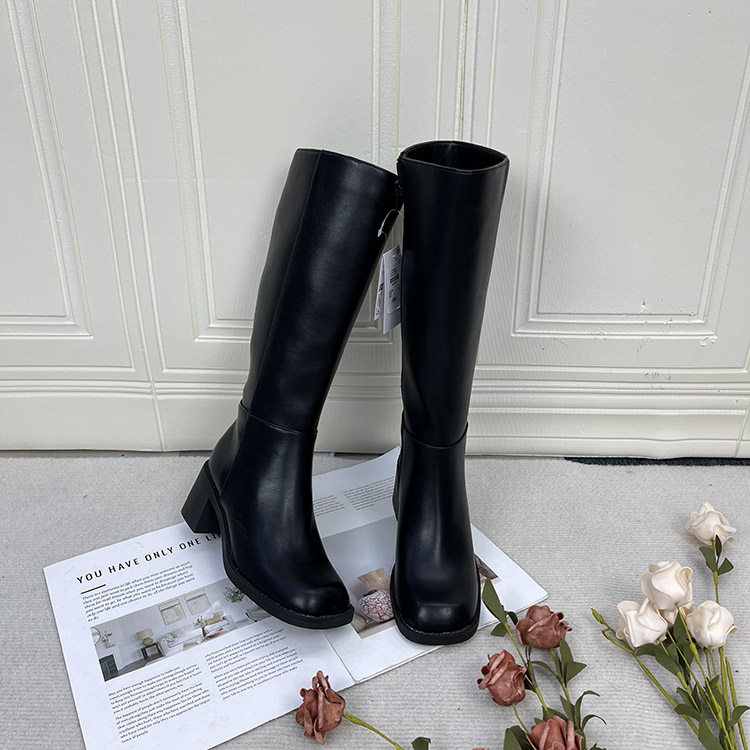 外贸原单春秋款欧美时尚百搭款侧拉链方头粗跟高跟时装长靴骑士靴