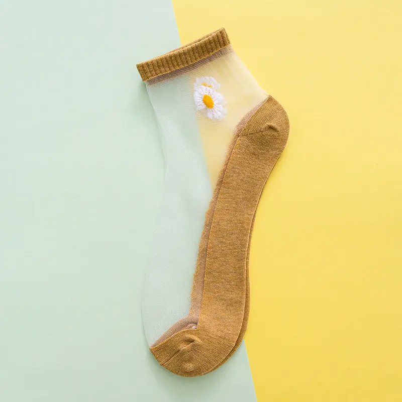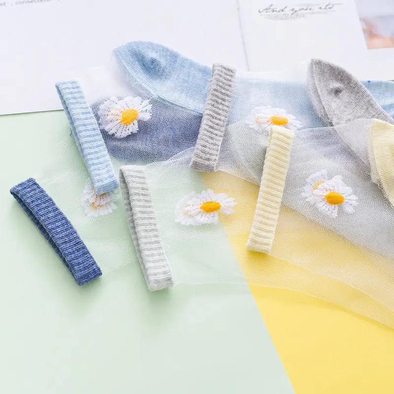 袜子女春夏薄新款小雏菊水晶袜玻璃丝袜日系短袜卡丝女袜