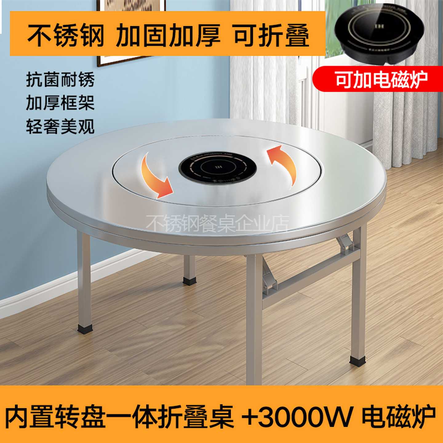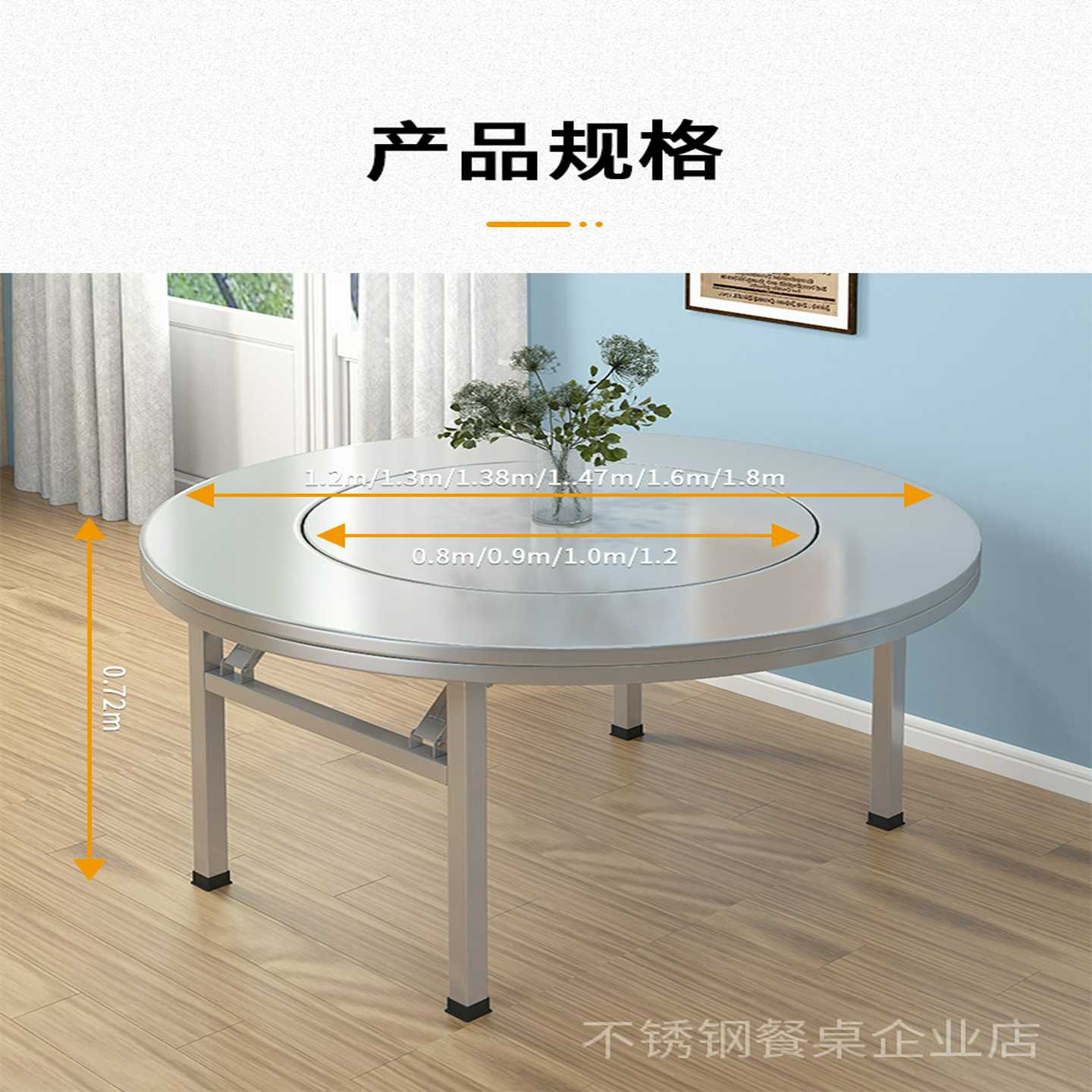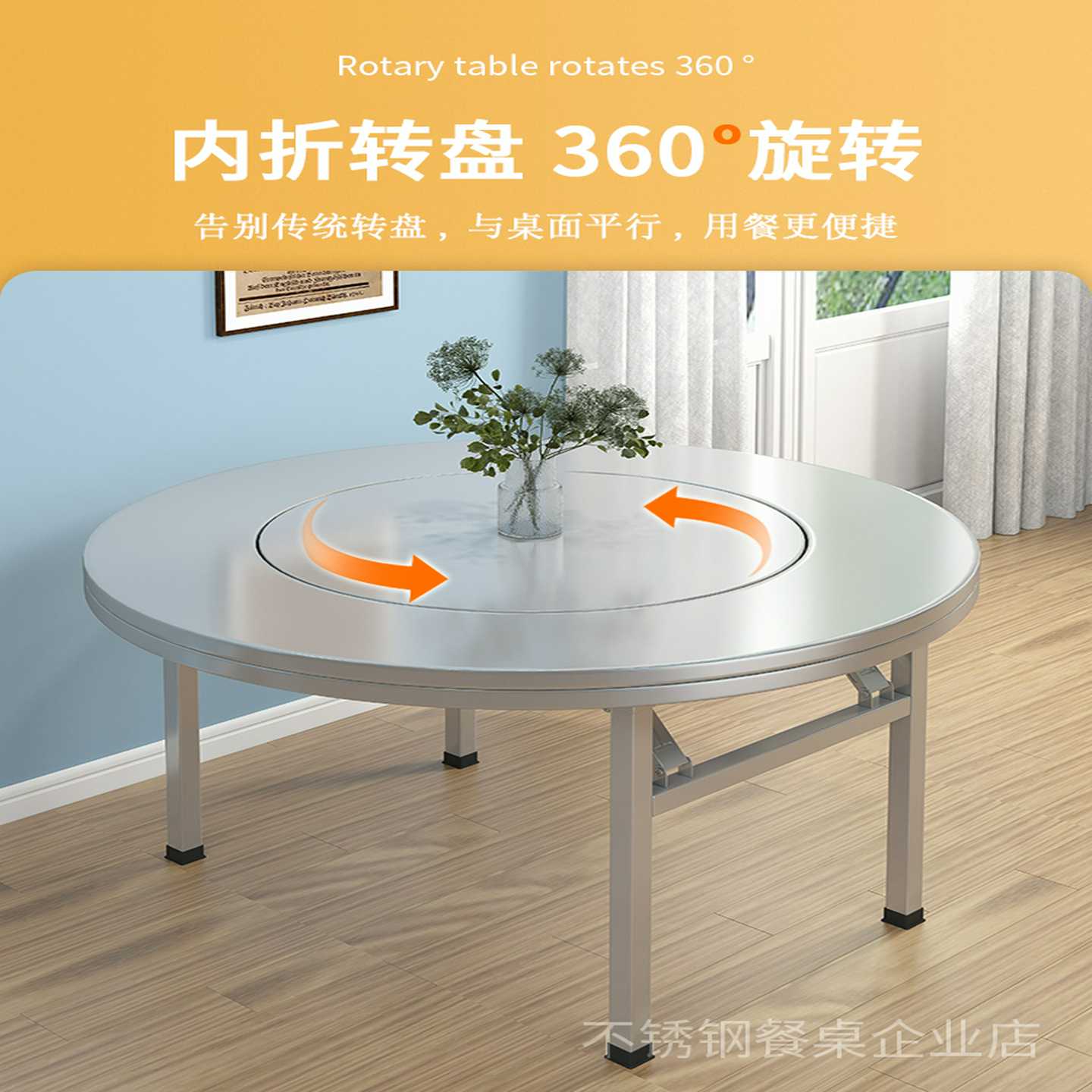 加厚304不锈钢内置转盘折叠桌大圆桌带转盘家用酒席饭店火锅桌