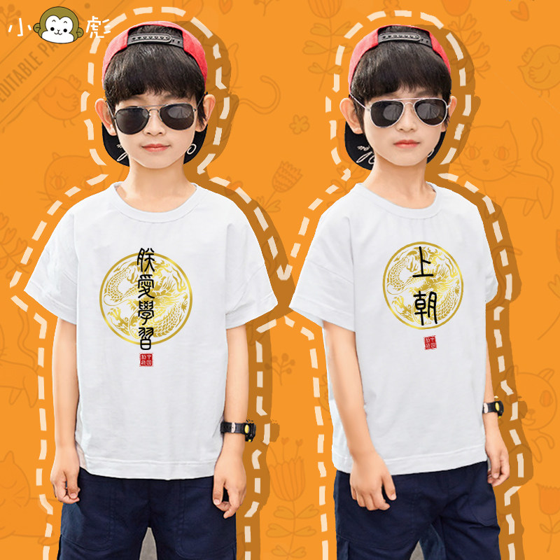 首页> 儿童> 朕知道了上朝进膳御驾亲征中国风儿童装短袖t恤衫男女学生款半袖