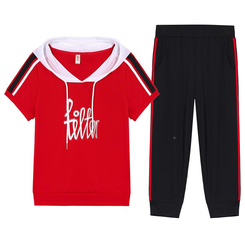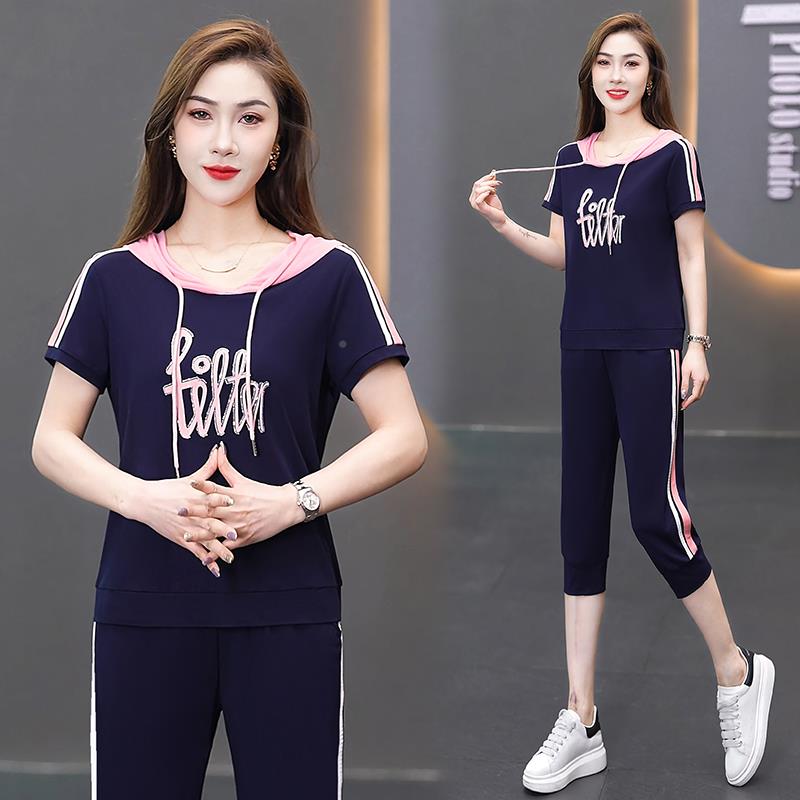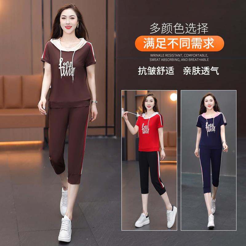 时尚运动套款装女夏季新短袖七分裤连帽衣气减洋龄休闲89796409卫