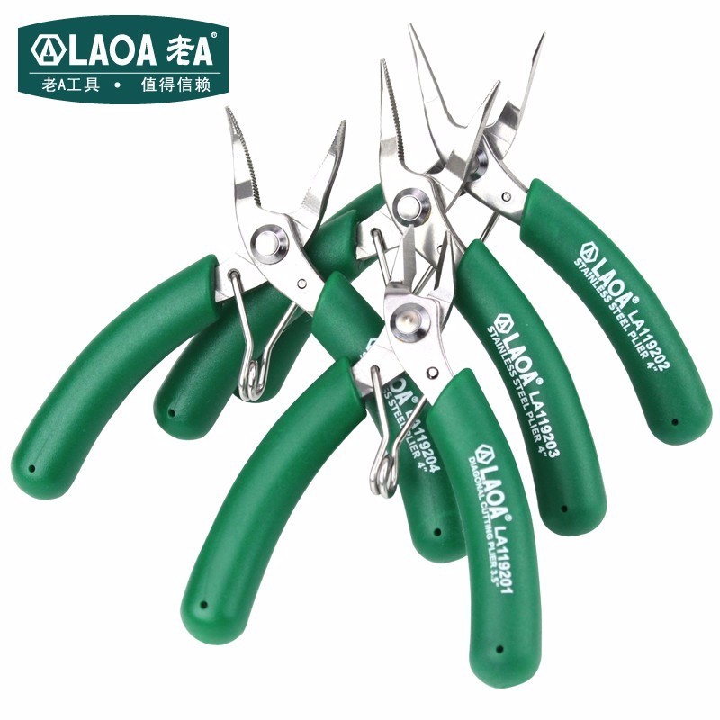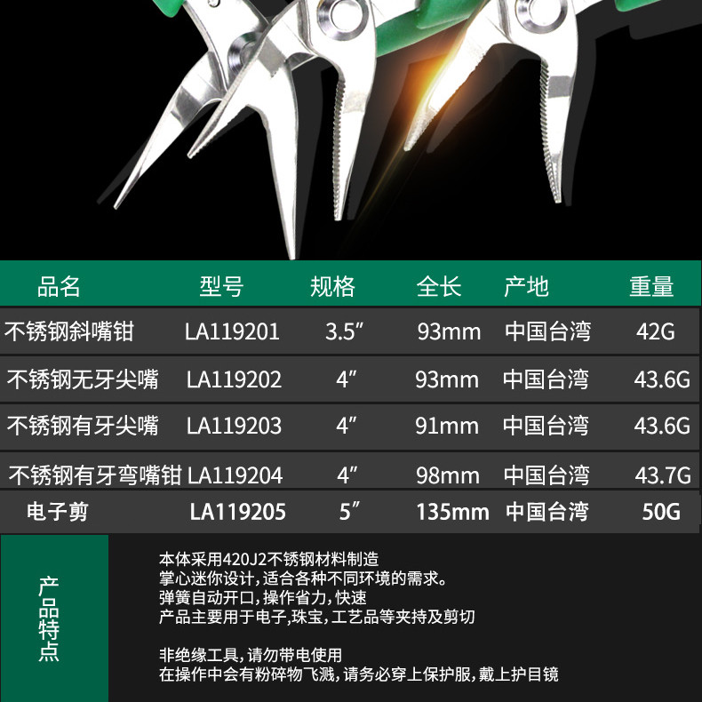 老A不锈钢迷你珠宝钳4寸牙尖嘴钳斜嘴钳台湾制造有牙弯嘴钳子