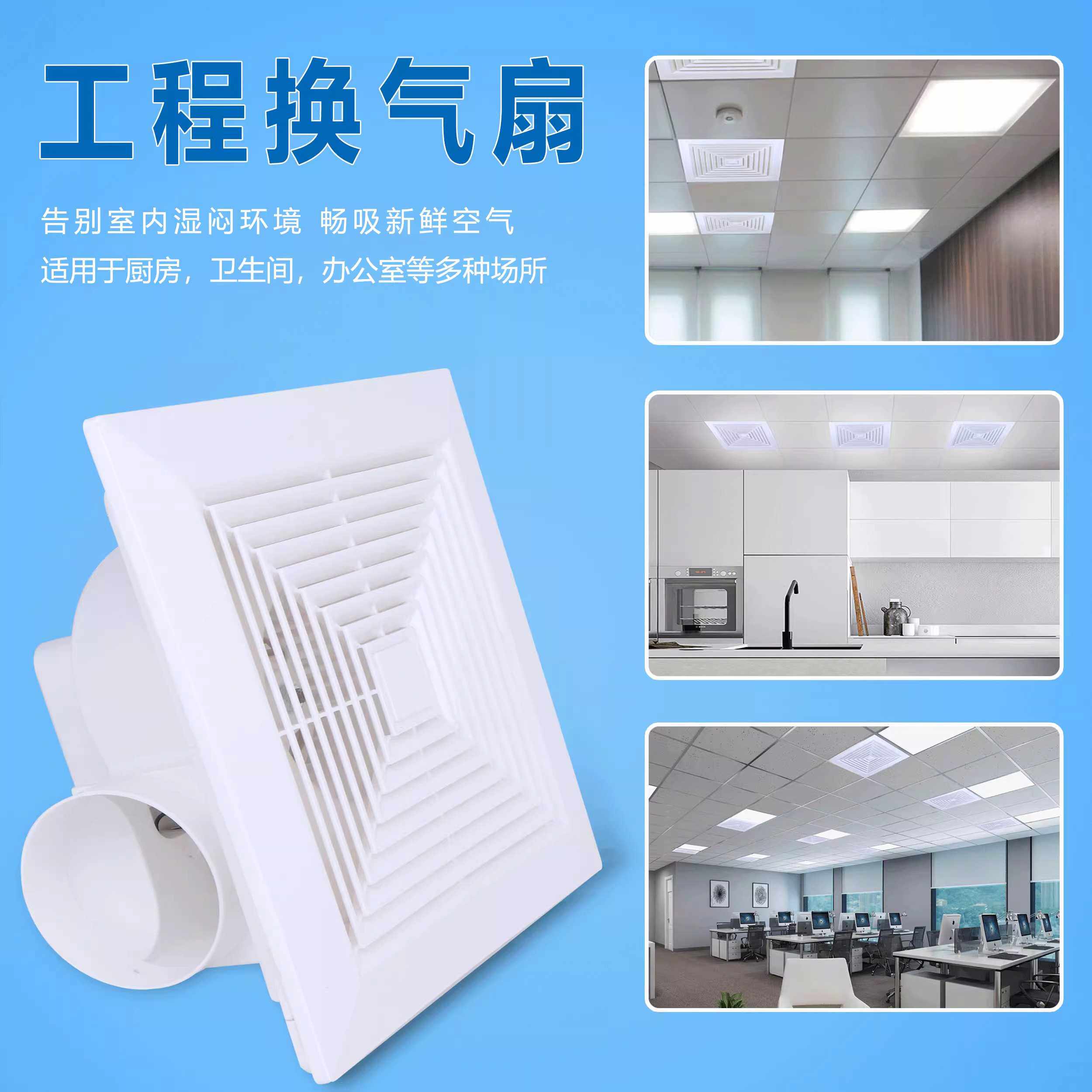 排气扇600x600集成吊顶铝扣板强力静音换气扇石膏卫生间60X60天花