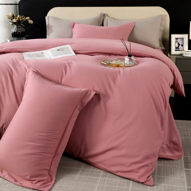 素色纯色四件套床上轻奢磨毛水洗棉三件套被套床单定制