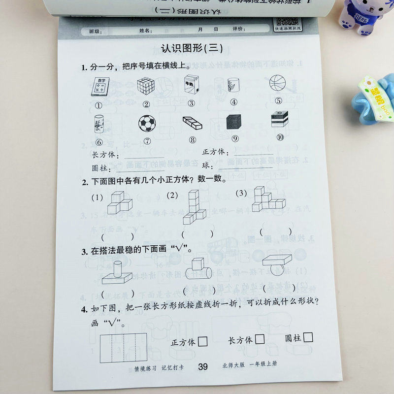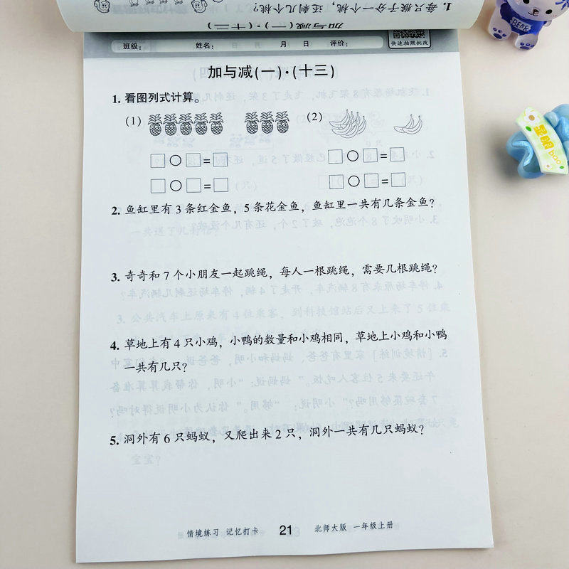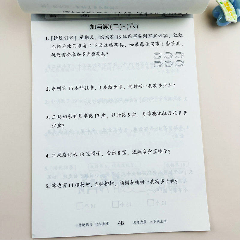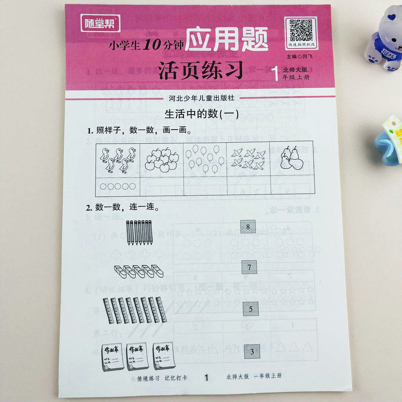 【随堂帮】北师大版一年级上册数学应用题卡活页练习纸北师版课本同步练习册每天10分钟计算题专项训练20以内加减法比大小认识图形