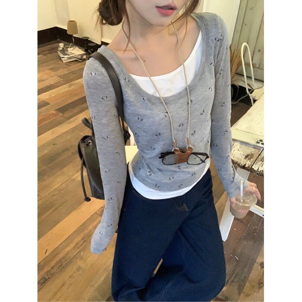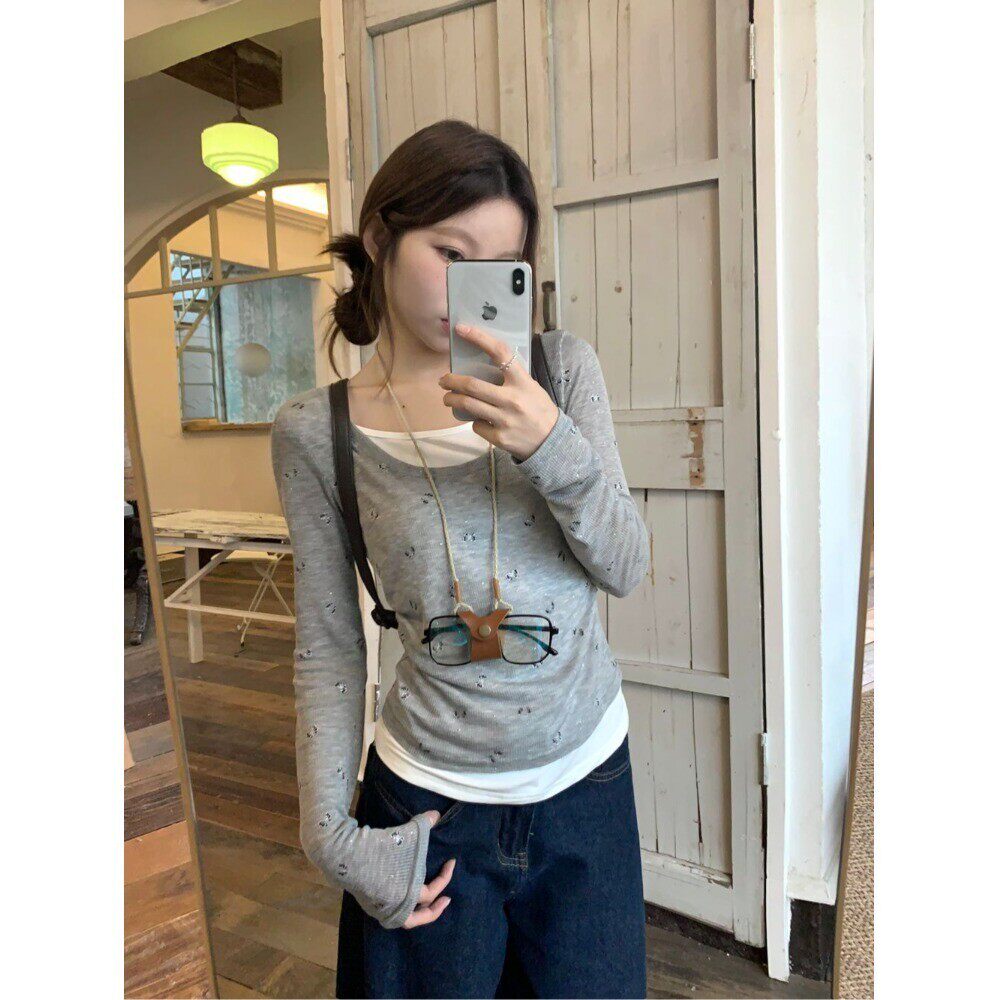 韩系独特别致假两件罩衫上衣女夏季2025新款小众设计薄款长袖T恤