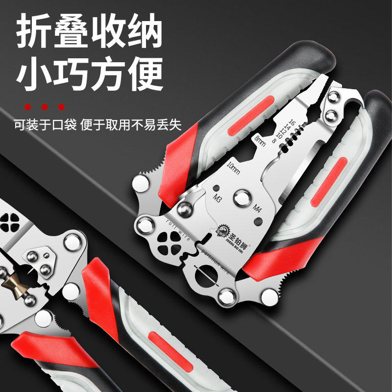 可折叠剥线钳新款多功能电工专用剪线扒皮拧螺丝钳子分线压线工具
