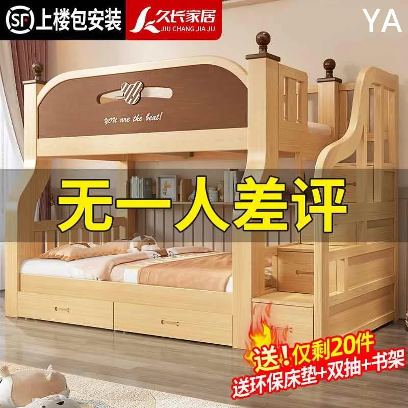 高低床双层床小户型上下床双人床上下铺儿童全实木大人组合母新款