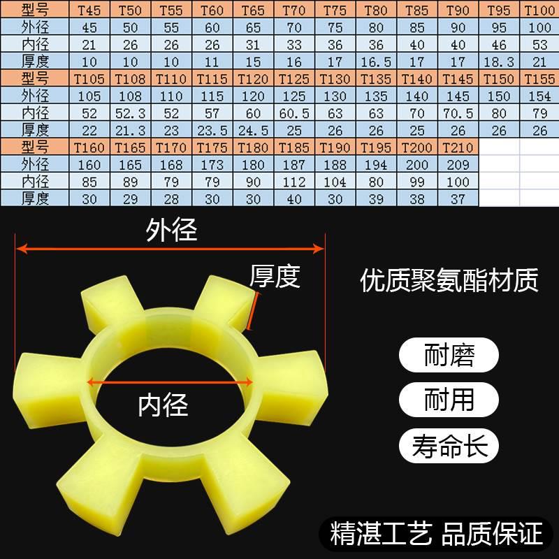 聚氨酯T型六角垫联轴器缓冲垫梅花六角轮水泵对轮垫橡胶垫弹性块