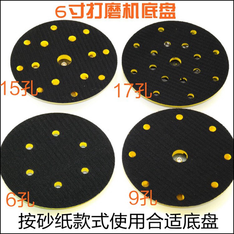 气动干磨机磨垫6寸17孔砂纸磨盘托盘150mm磨头底座6寸9孔粘盘包邮