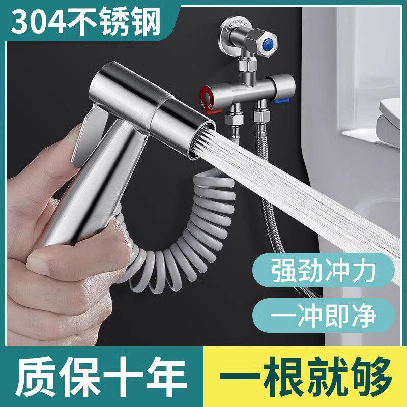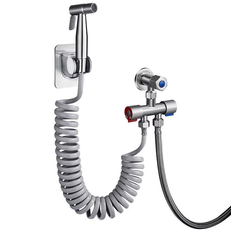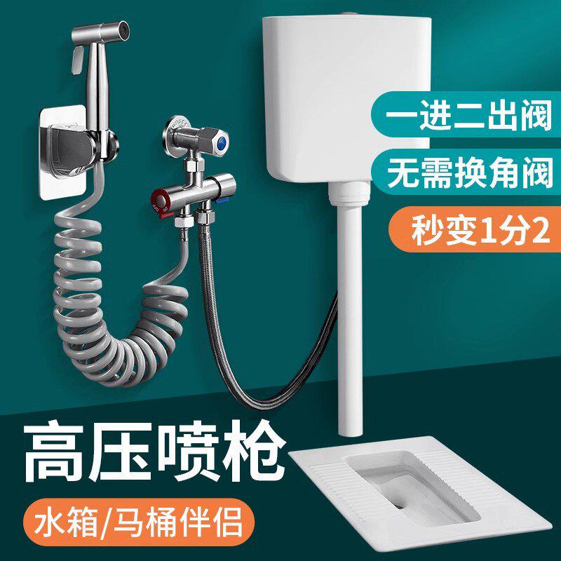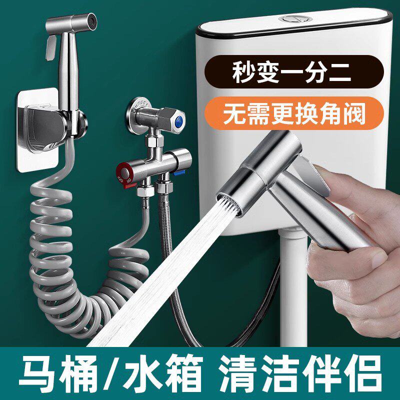 蹲便器水箱角阀一进二出带喷枪马桶三通伴侣双出水三角阀冲洗水枪