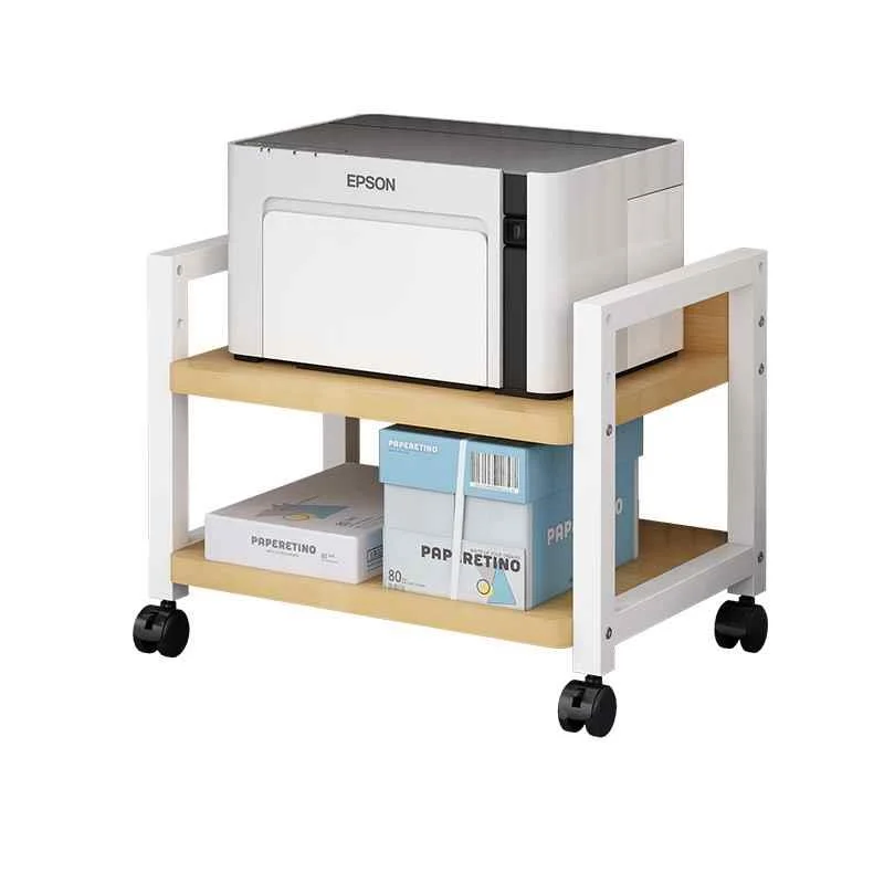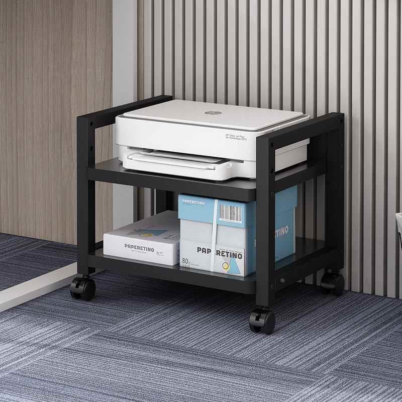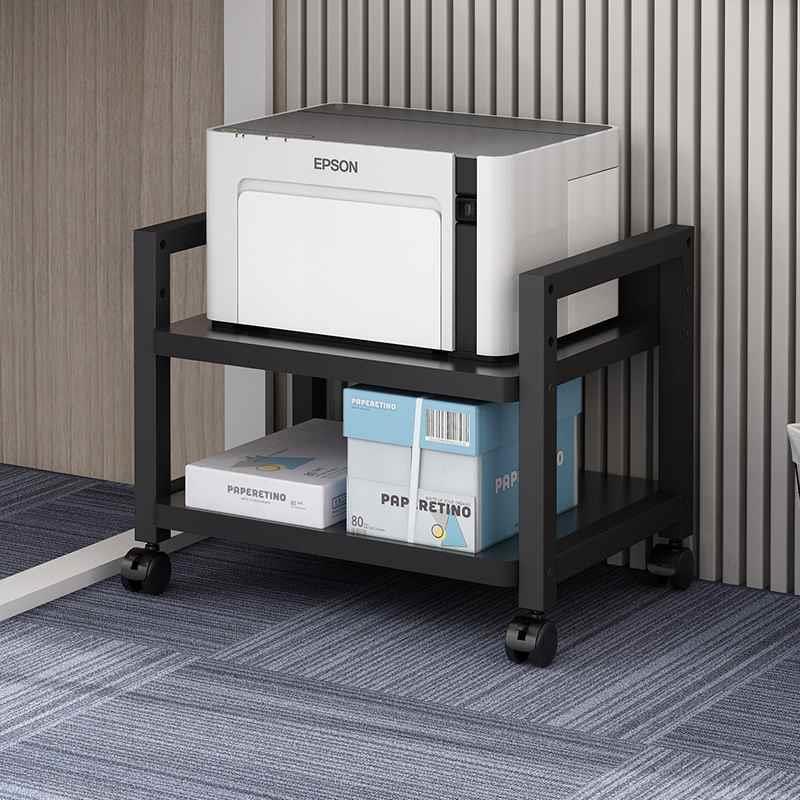 办公室双层落地打印机置物架书房桌下带轱辘可移动可调节高度新品