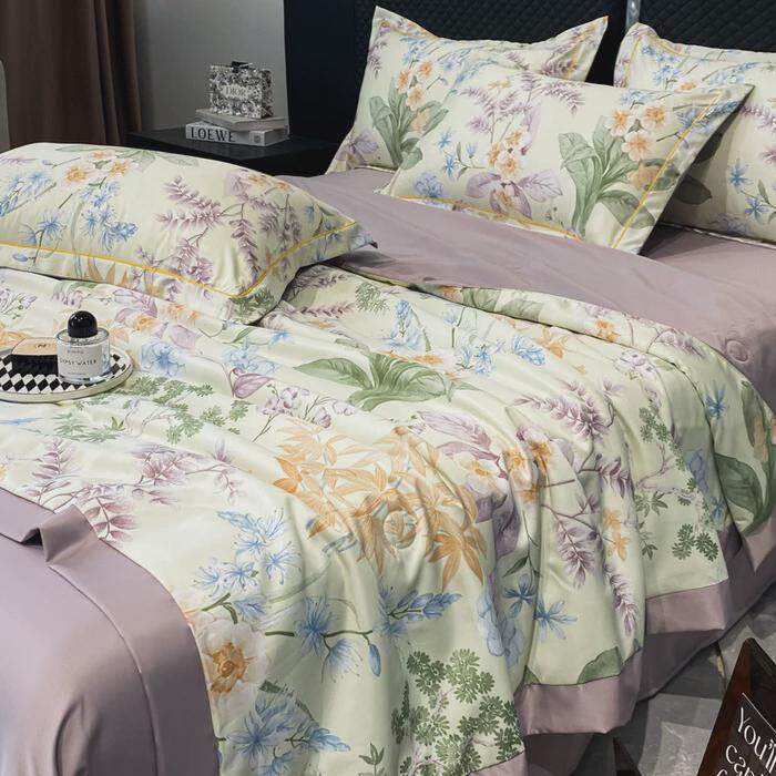 水洗天丝冷感夏被四件套冰丝夏凉被感可水洗印花凉空调被直播爆款