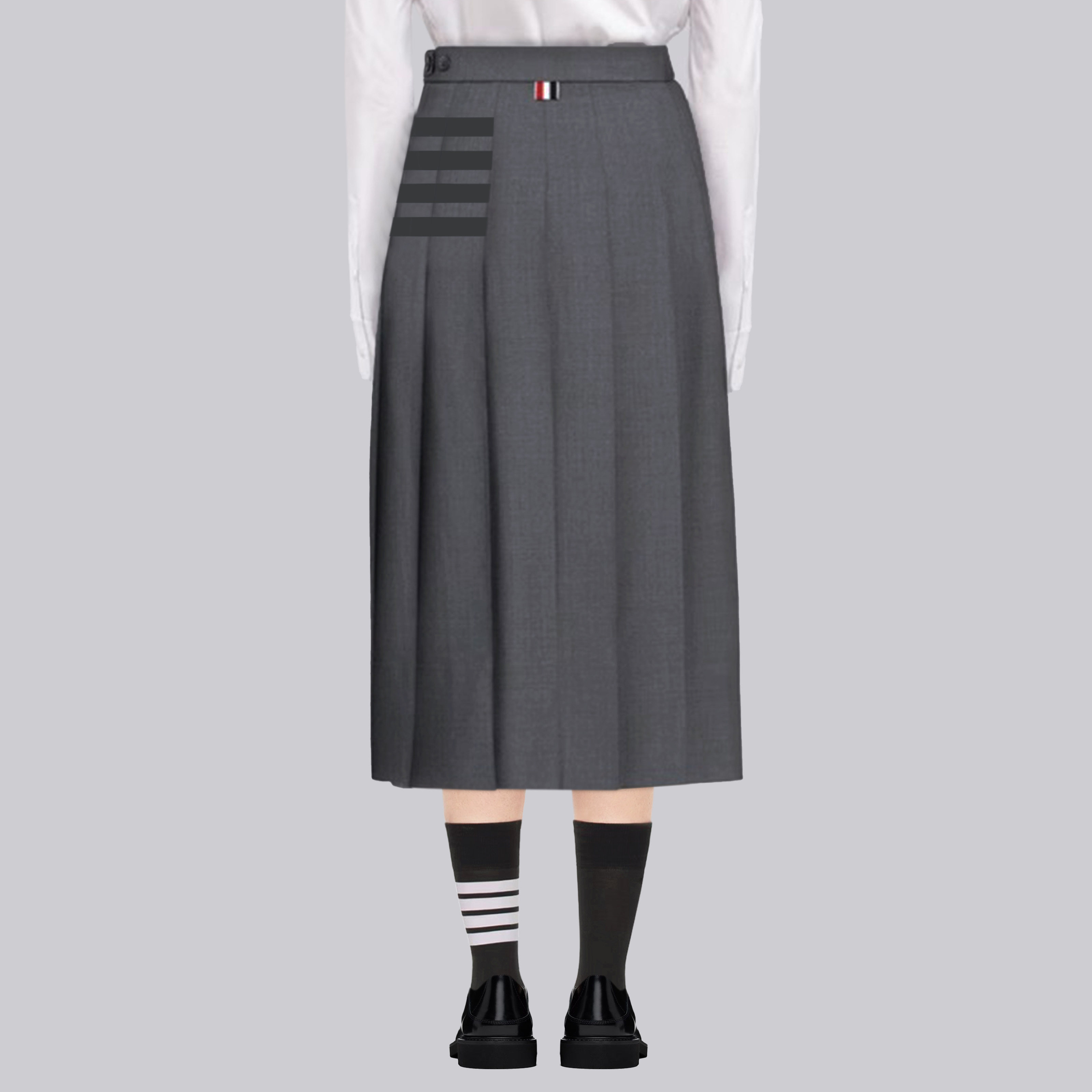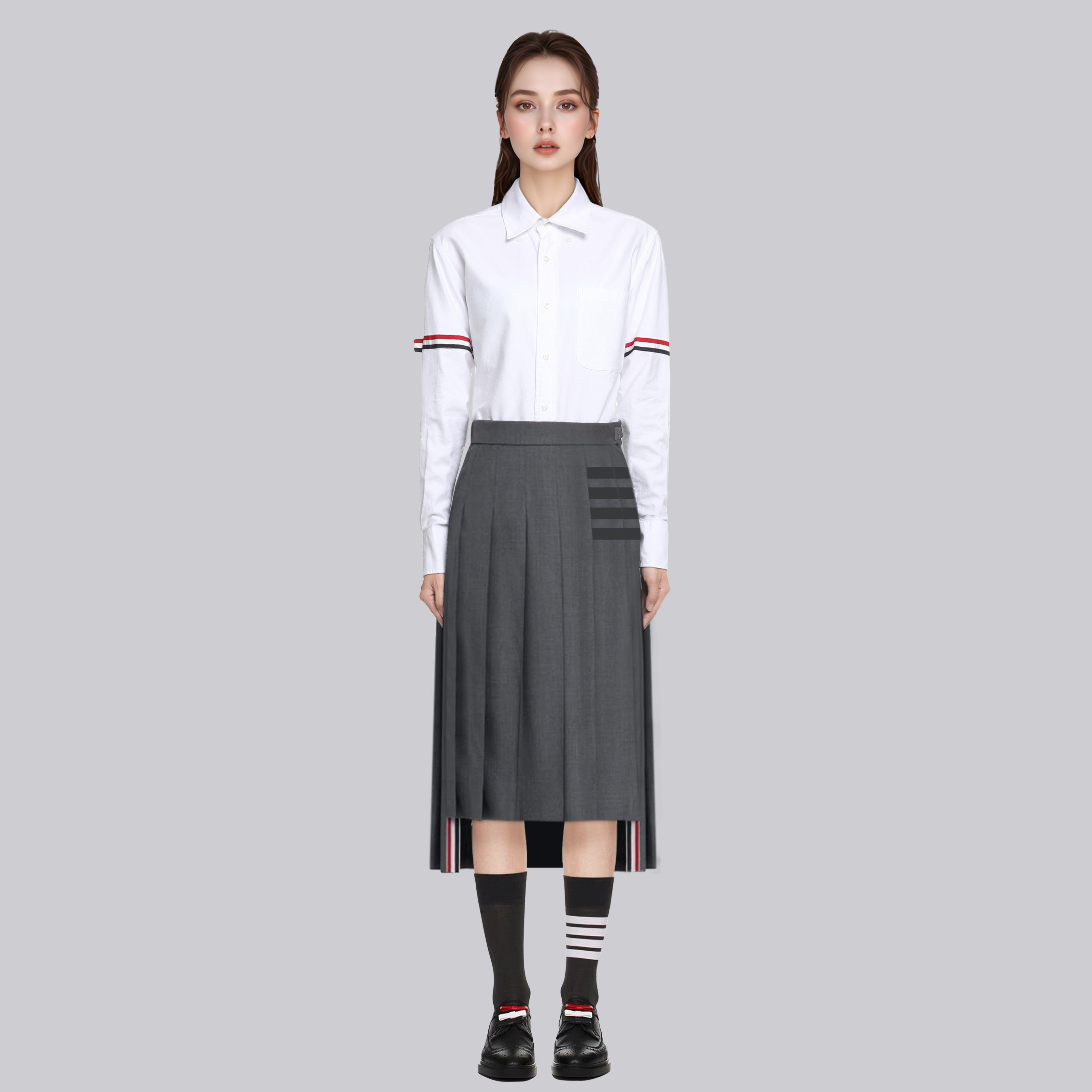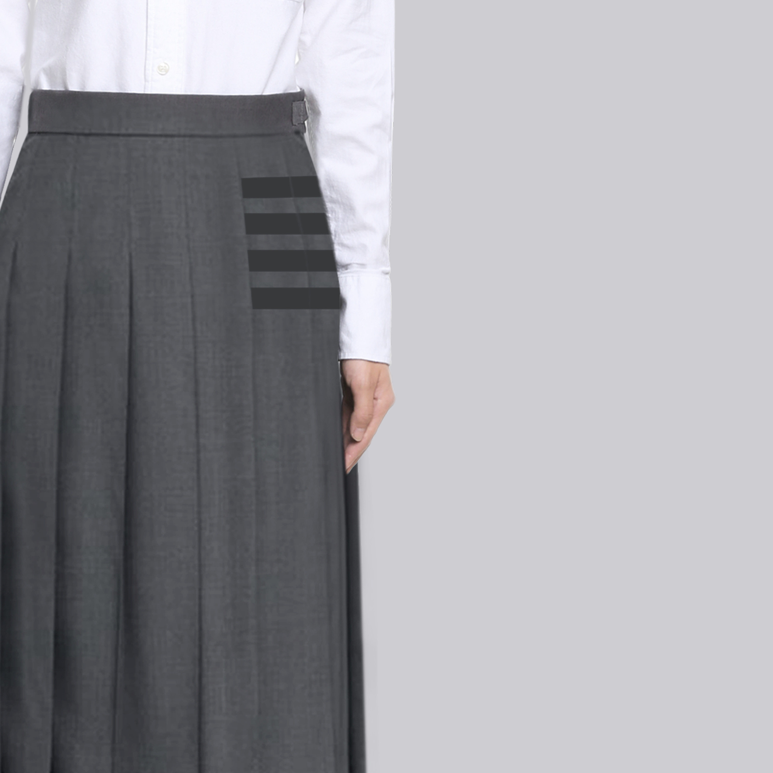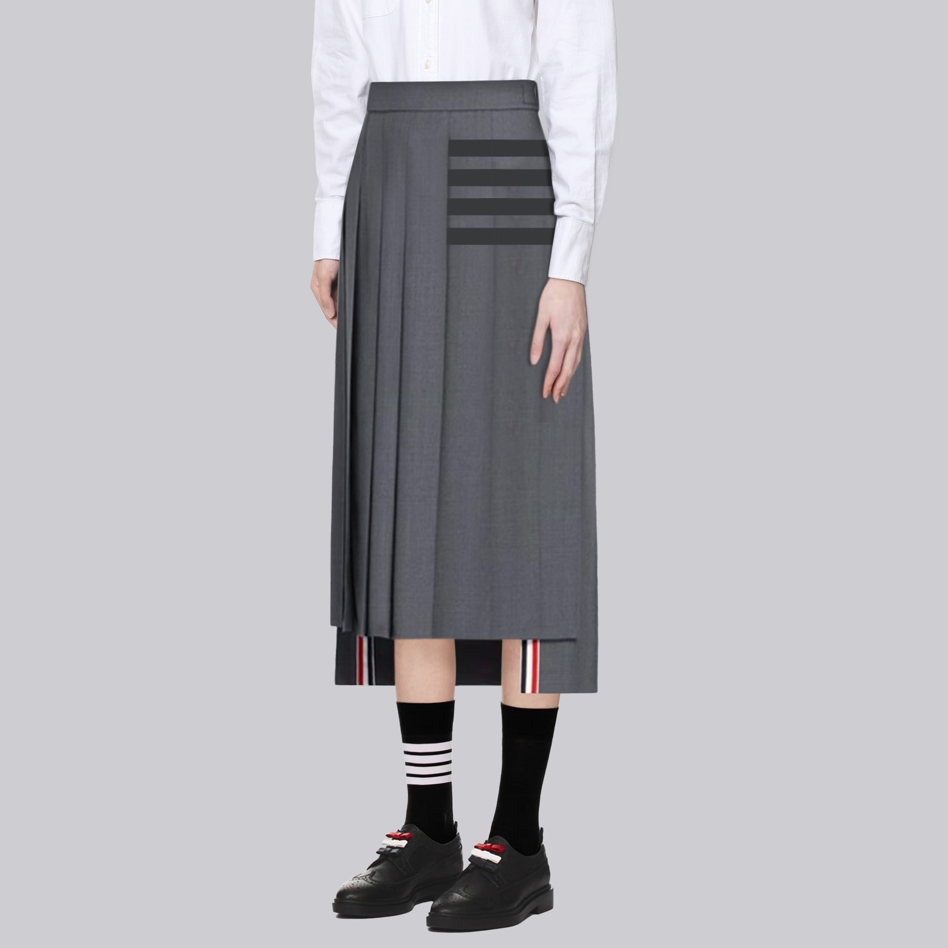 TB百褶裙秋冬新款长裙高腰a字灰色半身裙气质复古西装裙修身显瘦