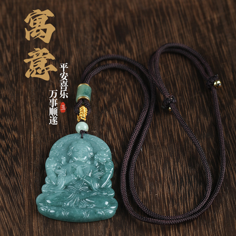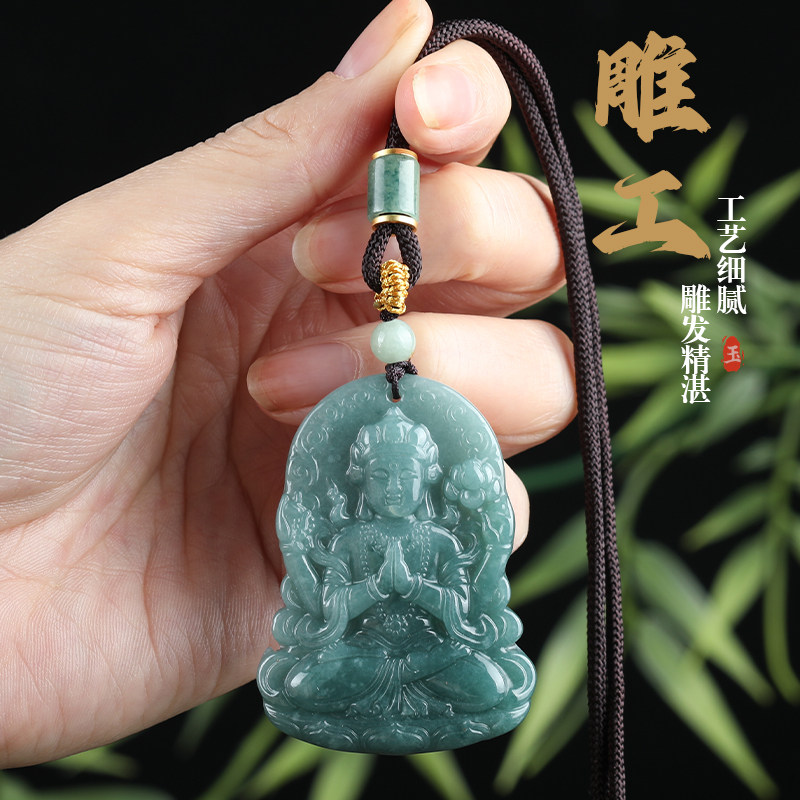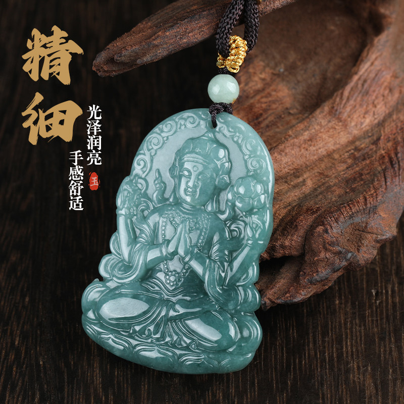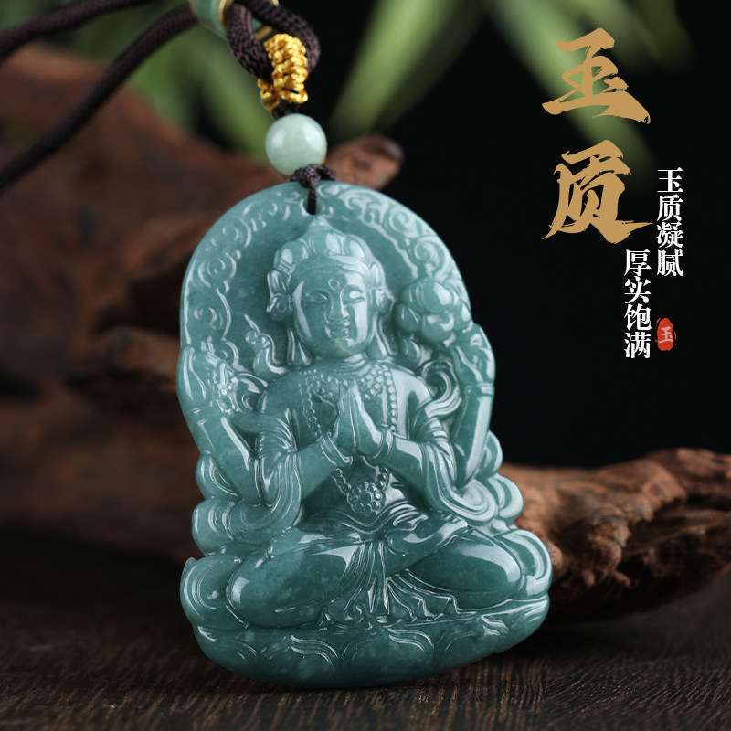 首页> 配饰> 唐今玉天然A货翡翠蓝水四臂观音冰种玉石吊坠男士玉坠女款挂件玉