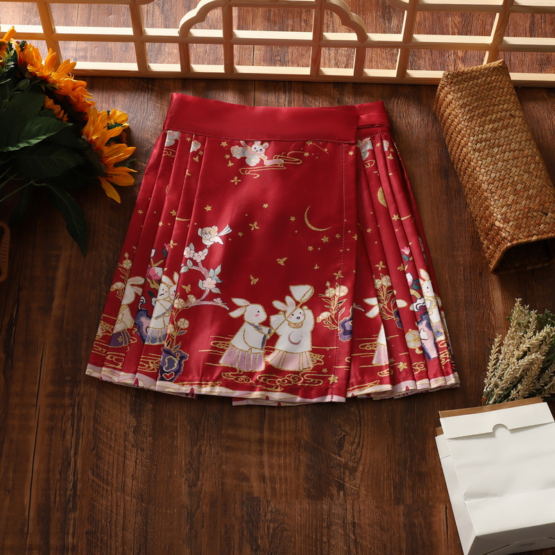 夏季新款文艺复古国风少女汉服传统汉元素改良收腰系带短款马面裙