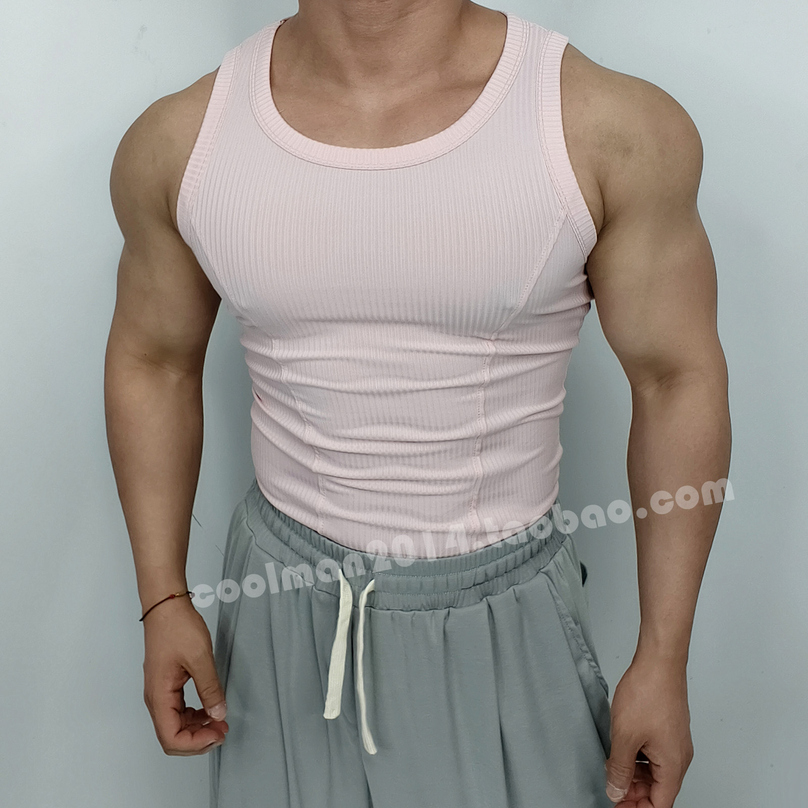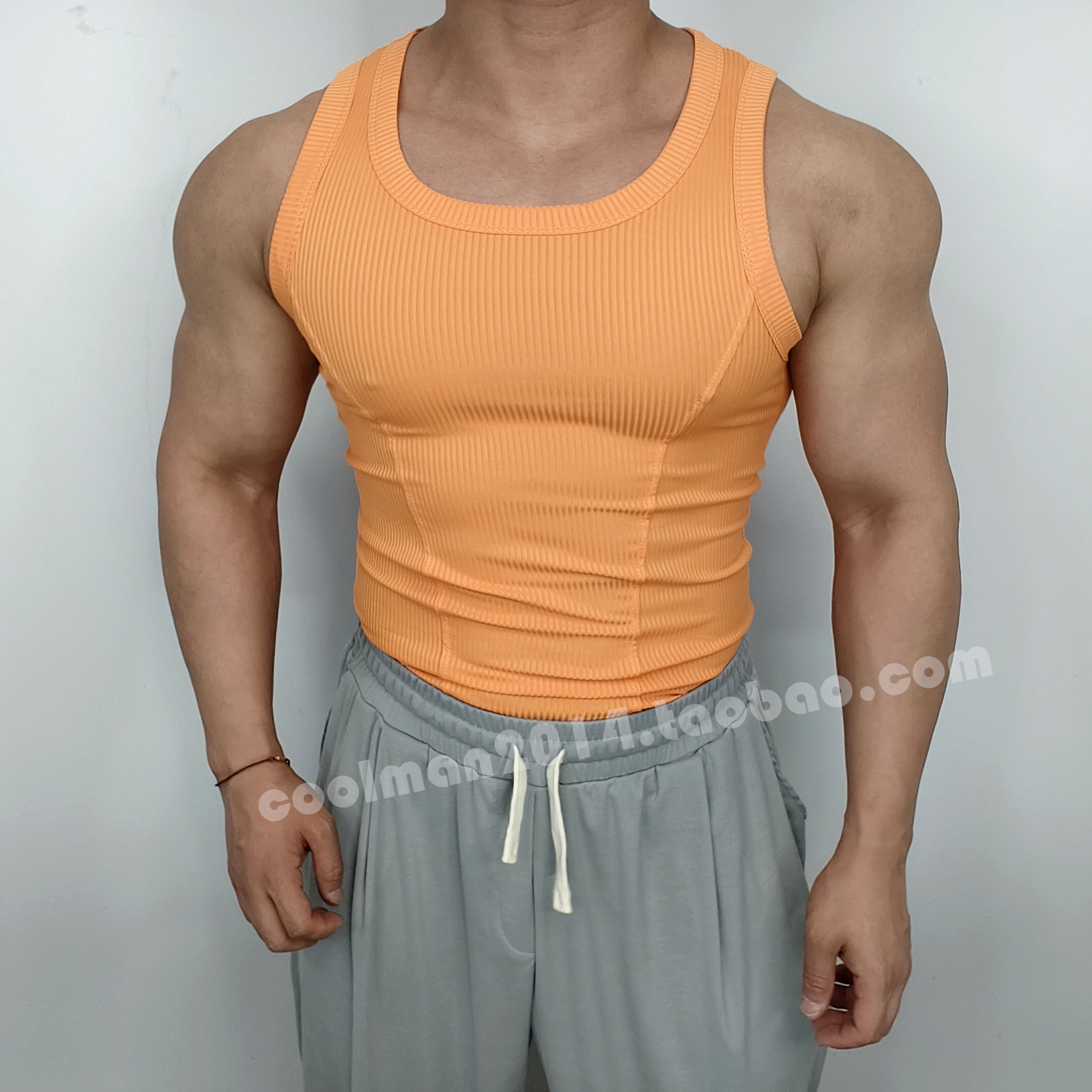 户外跑步运动T恤男士健身螺纹背心速干纯色休闲紧身无袖训练坎肩
