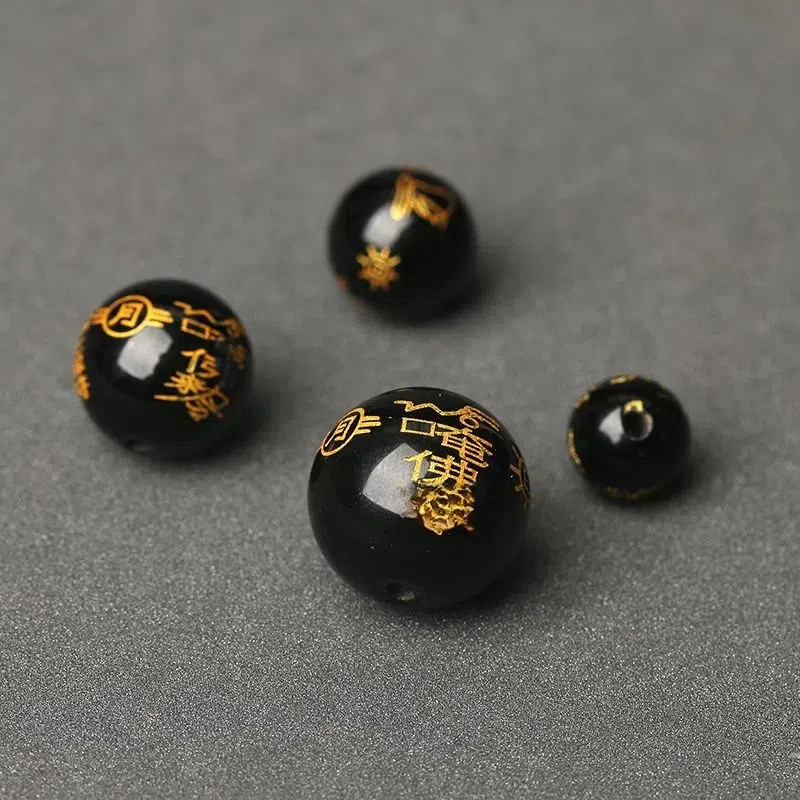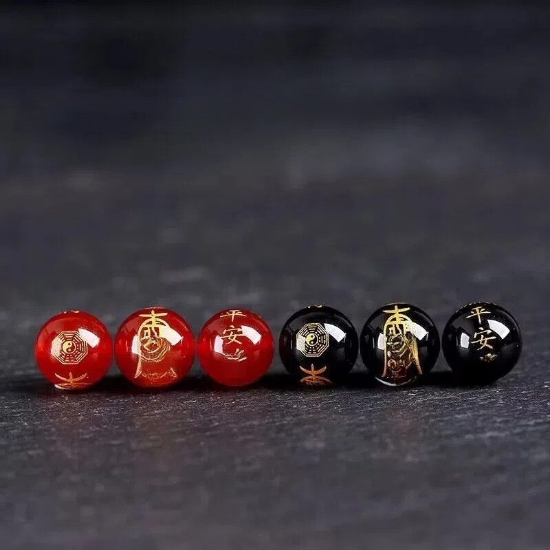 天然红黑玛瑙化解烫金珠子桶珠圆珠子 DIY手工编织本命年红绳配珠