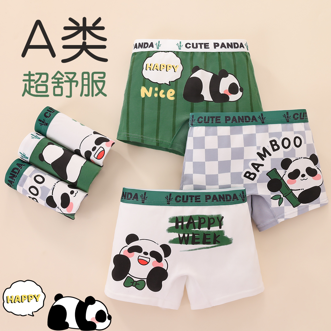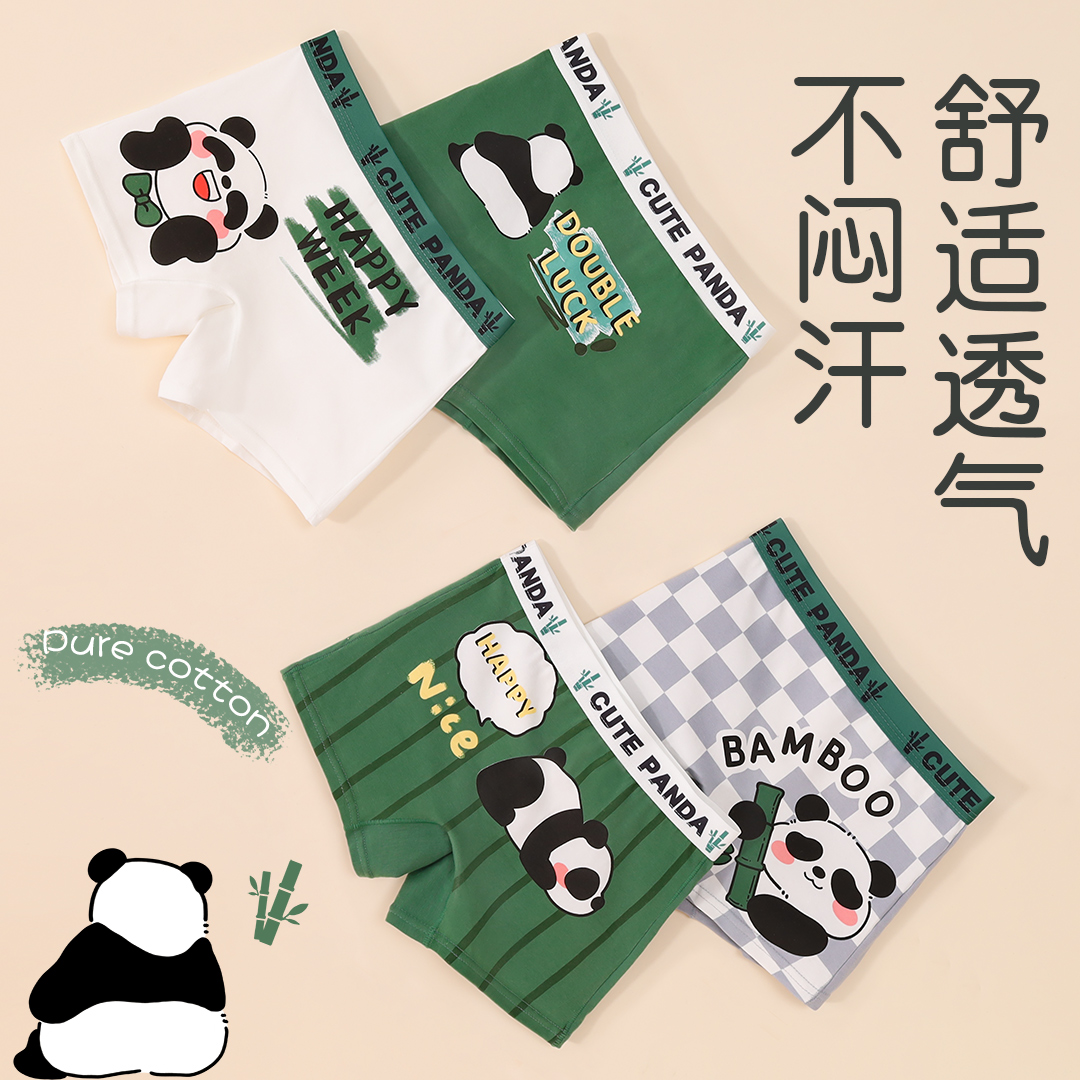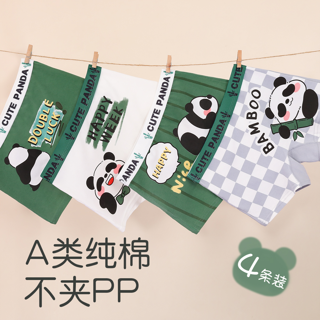 快乐熊猫-男童内裤儿童纯棉平角裤男孩四角短裤透气纯棉小童底裤