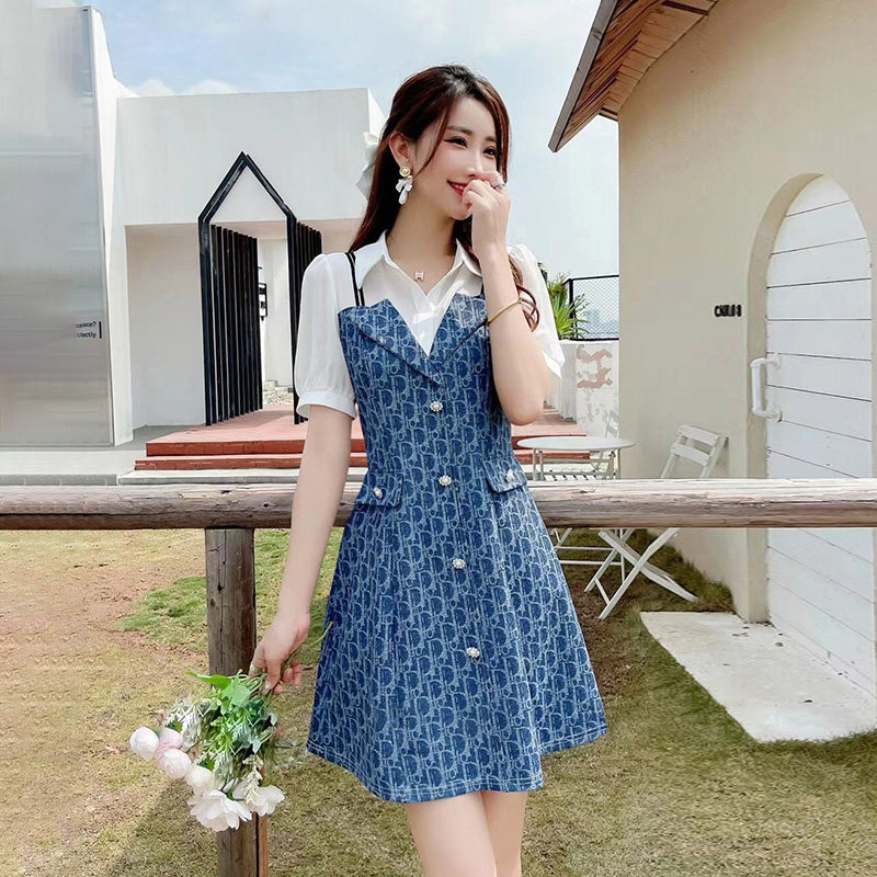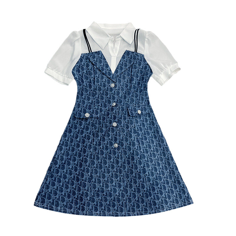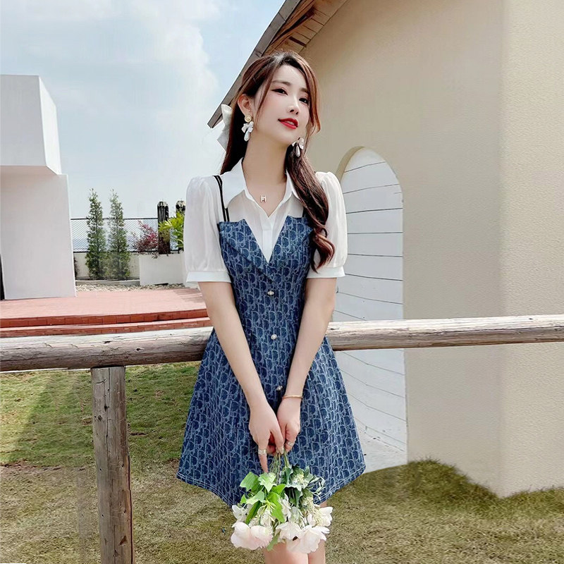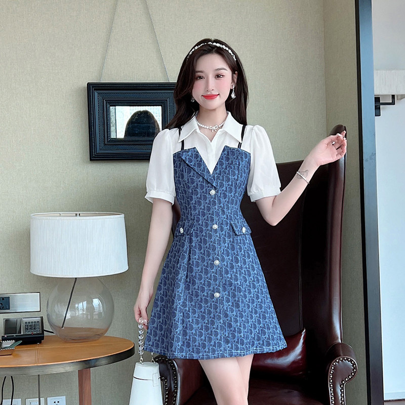 甜辣小香风气质通勤职业A字高级感显瘦假两件衬衫式连衣裙女夏季