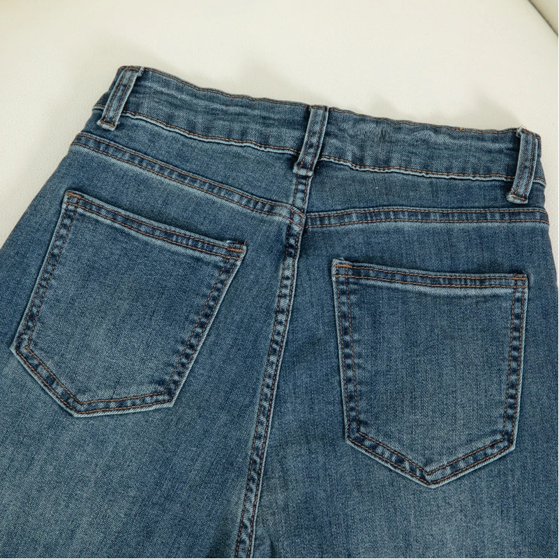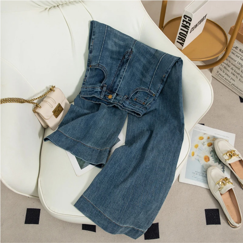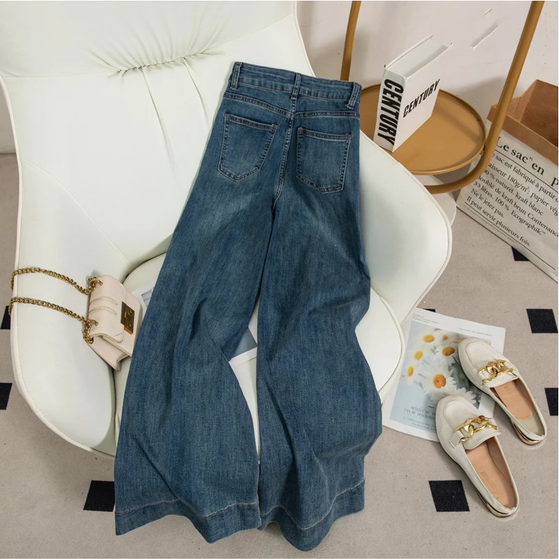 7488 W【八面弹】复古蓝设计感阔腿牛仔裤女春季高腰显瘦宽松裤子