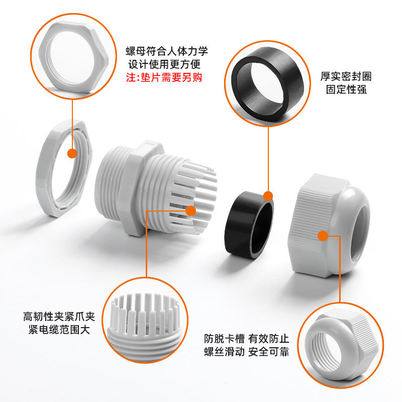PG/M型尼龙电缆防水接头电线固定葛兰头塑料密封格兰头德公制整包