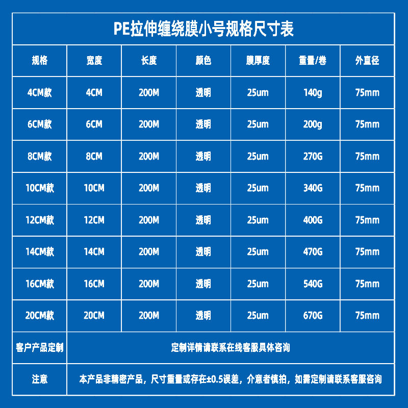 pe拉伸膜缠绕膜打包膜工业保鲜膜透明塑料嫁接薄膜保护膜小卷围膜