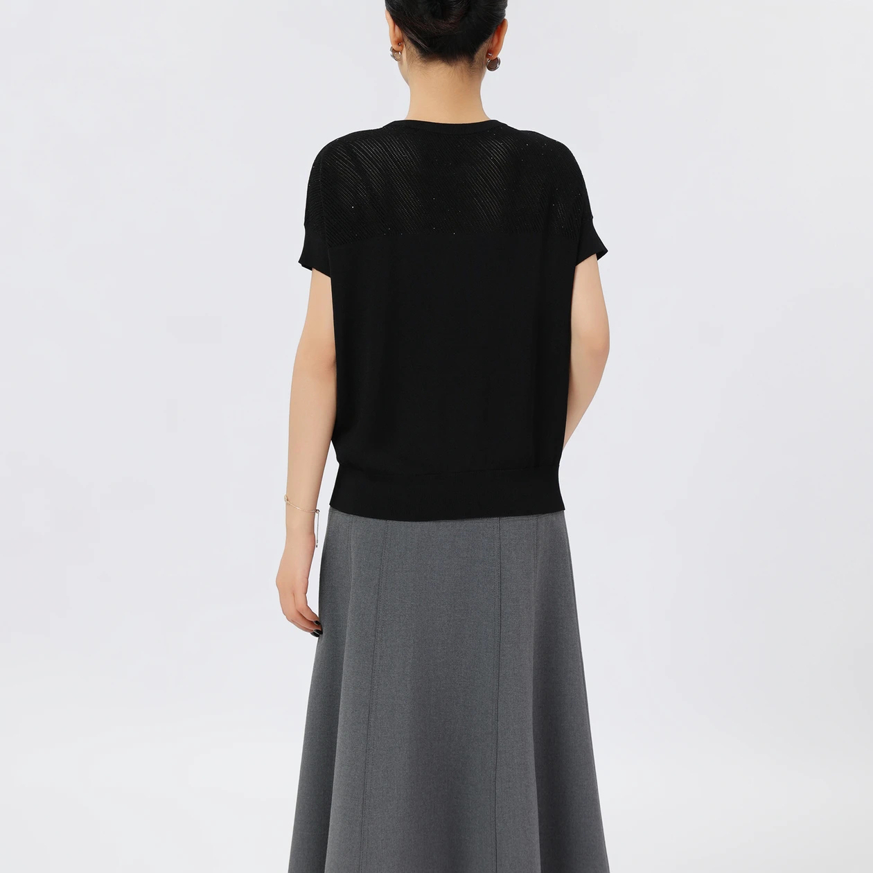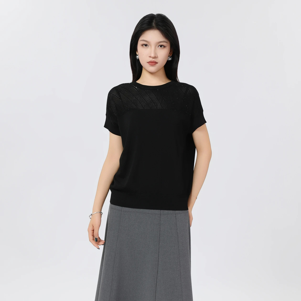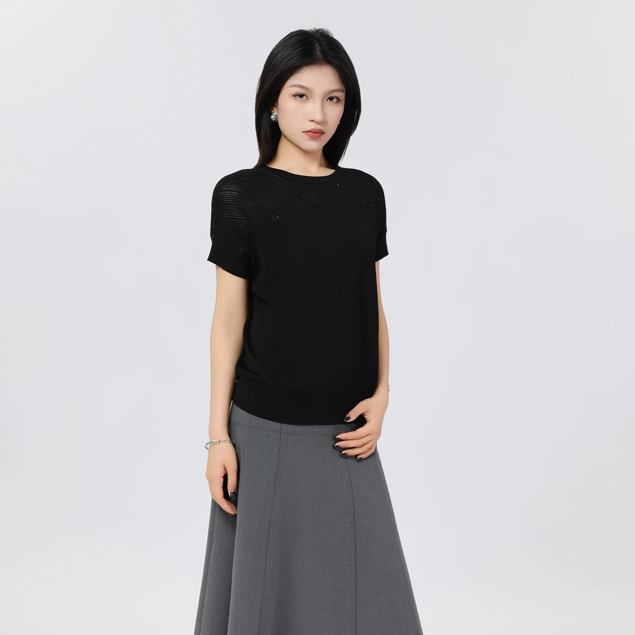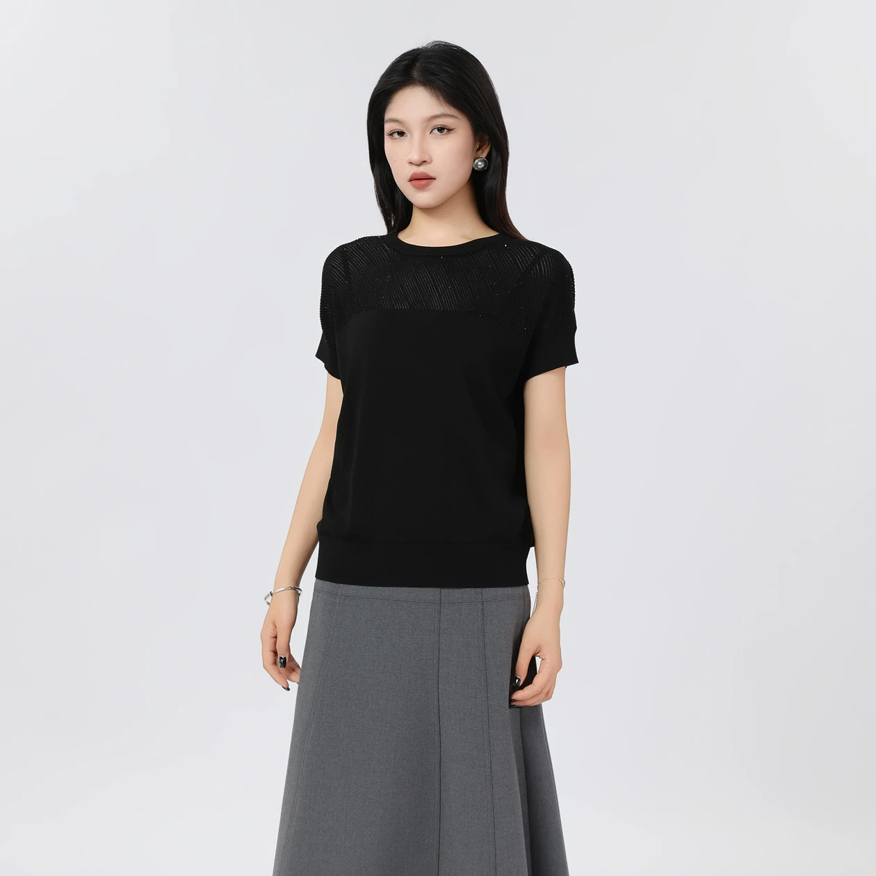 阿玛施2025春夏新款宽松百搭上衣T恤简约气质针织修身显瘦538012