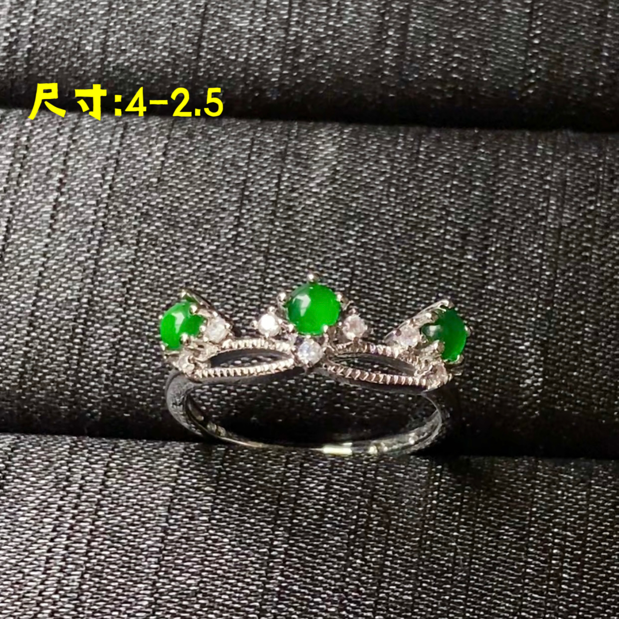 天然翡翠A货戒指皇冠冰种阳绿蛋面925银镶满绿界面可调节圈口