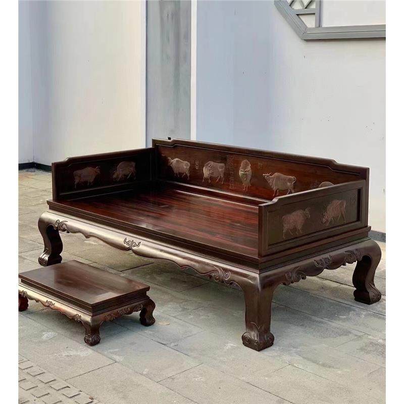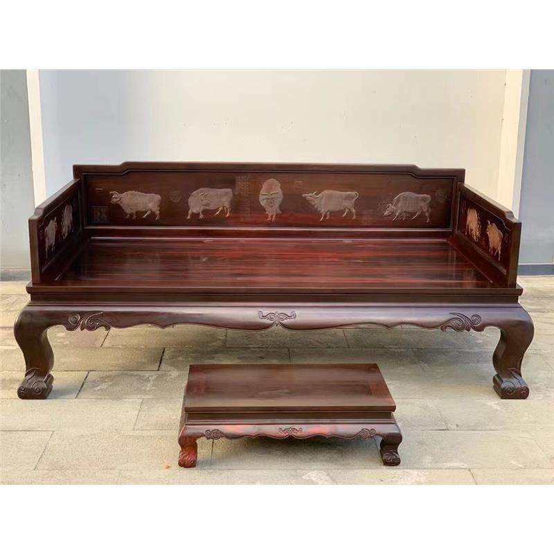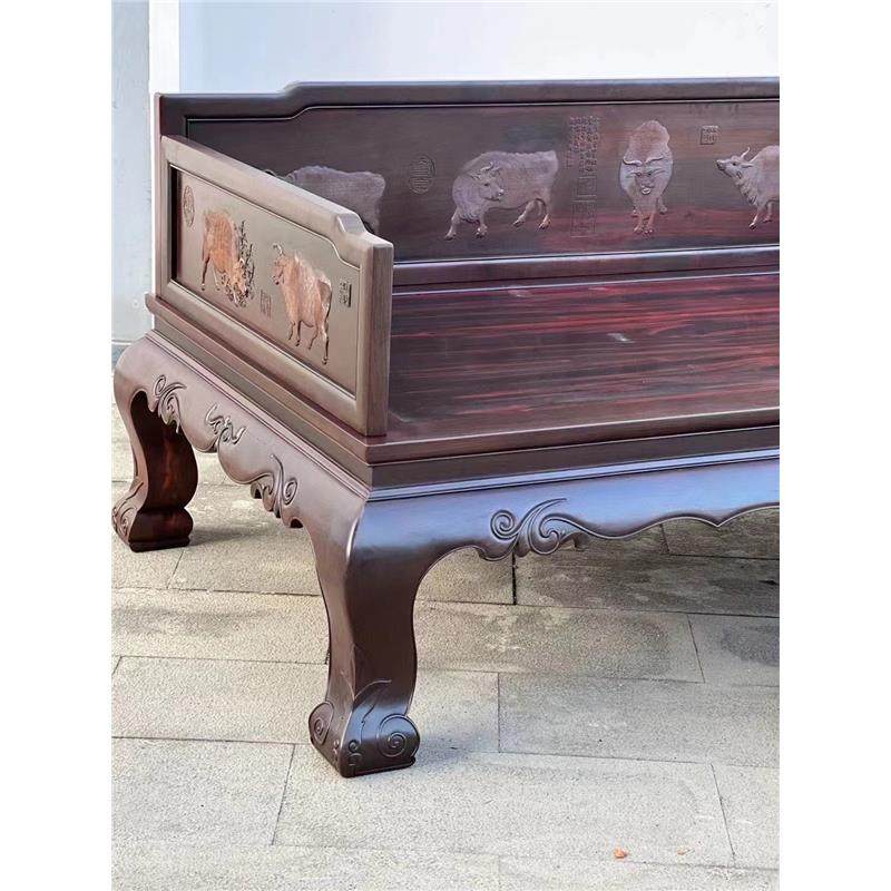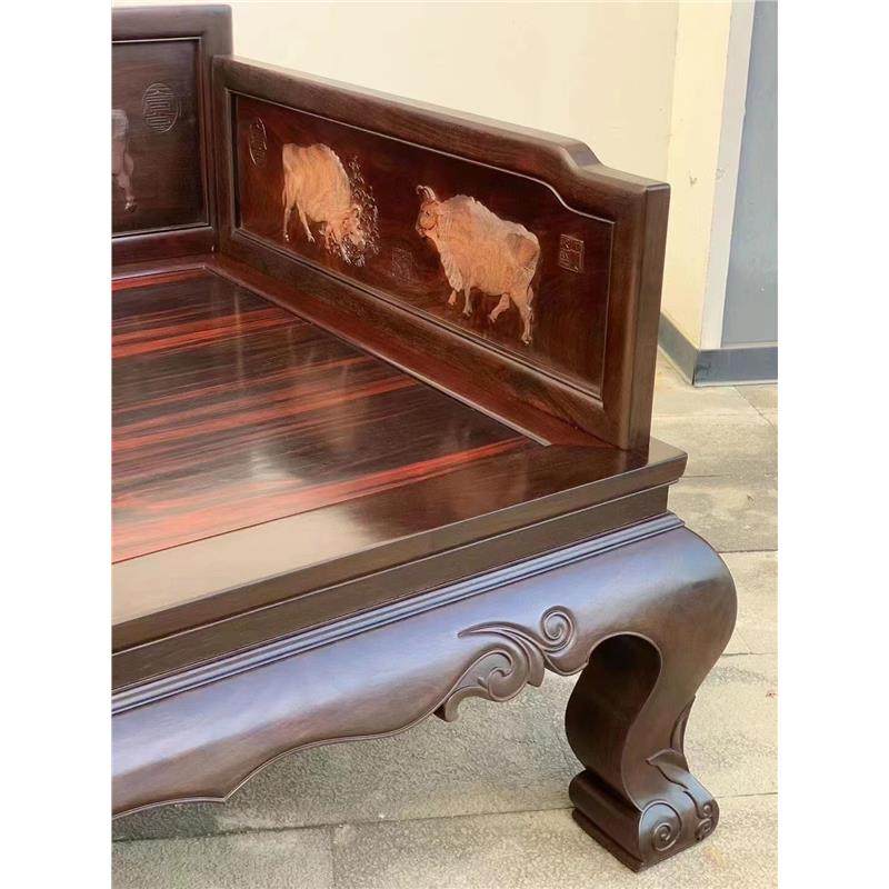 榫卯酸枝黄檀五牛古典罗汉床中式龙床交趾三件套床榻大红红木家具