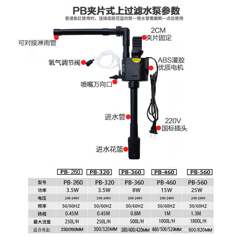 小型鱼缸过滤器多功能三合一增氧潜水泵金利佳PB-360超静音循环泵