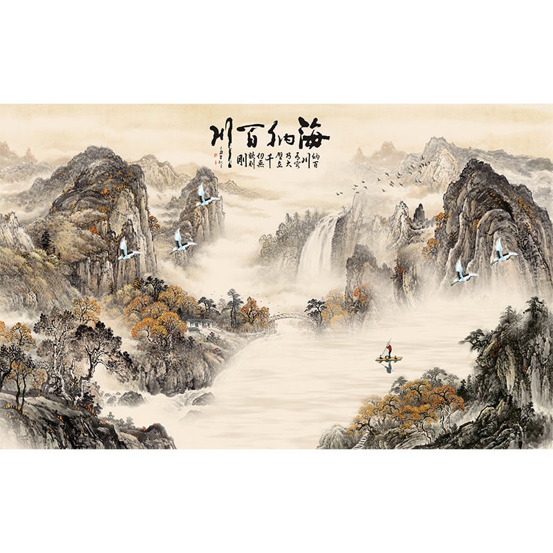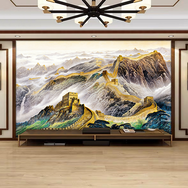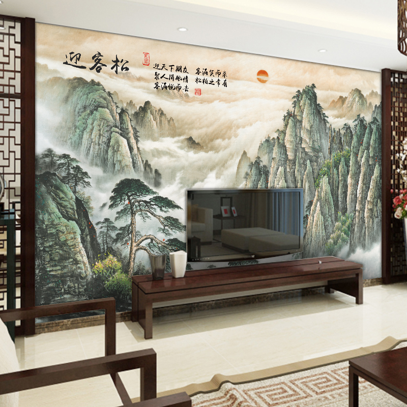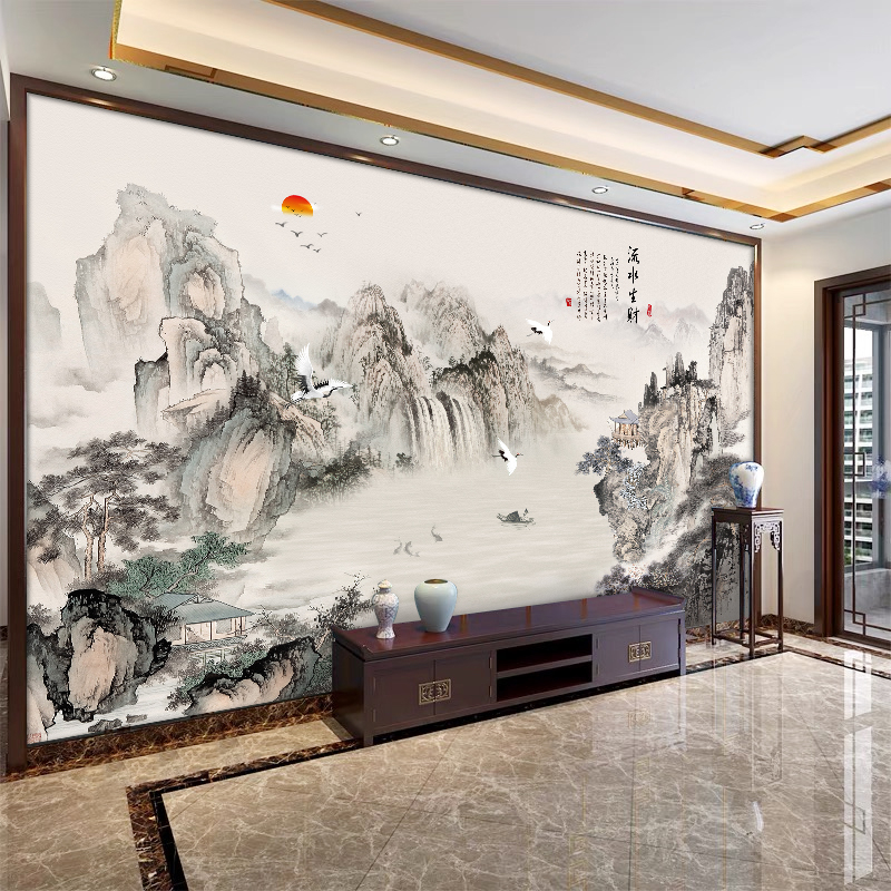 新中式电视背景墙壁画定制墙纸8d立体山水画壁纸客厅墙布背景墙