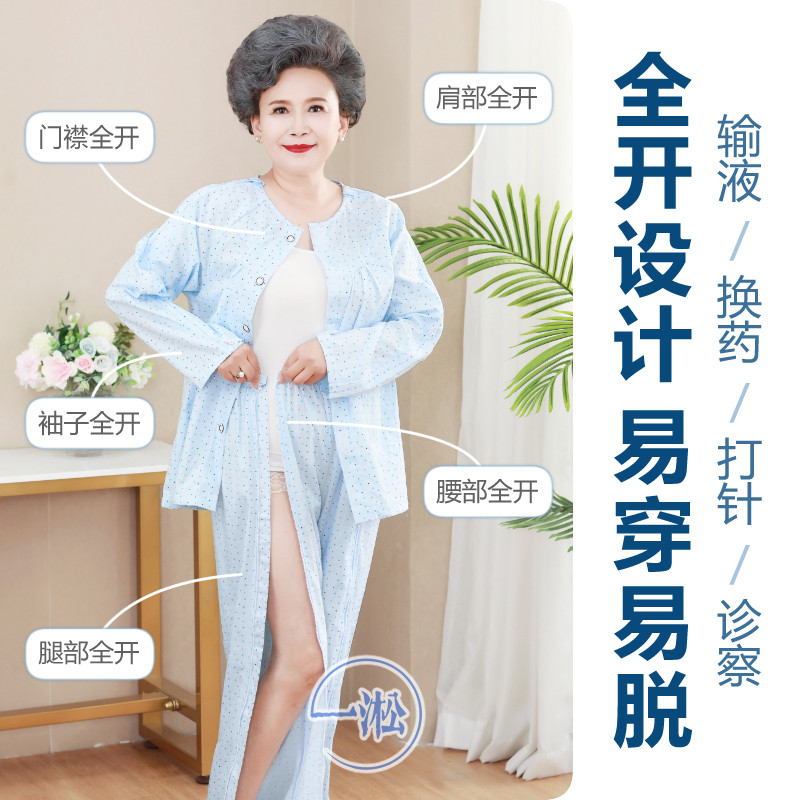 纯棉易穿脱护理服病号服瘫痪病人卧床老人偏瘫衣服胳膊腿骨折专用