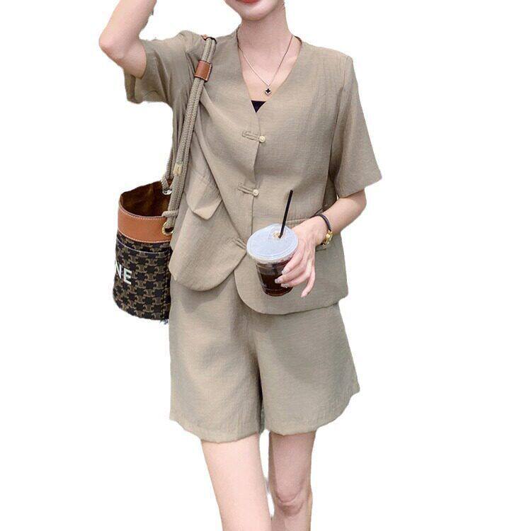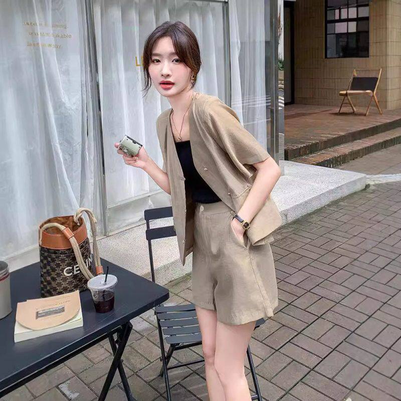 薄款短袖西装套装2025夏季新款小个子气质短裤盐系炸街轻熟两件套