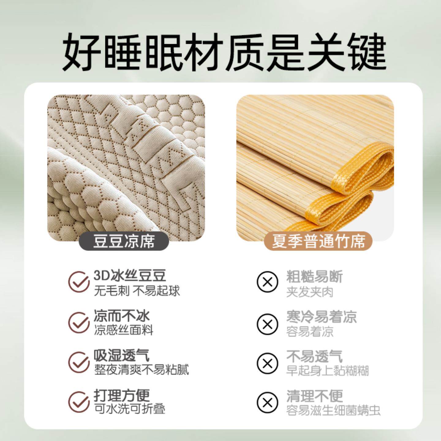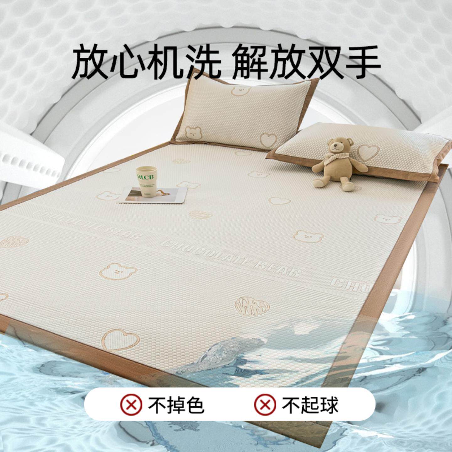 夏天冰豆豆凉席三件套2025新款夏季冰丝席A类母婴级可机洗软
