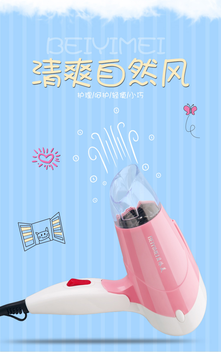 贝依美家用电吹风机筒1000小功率冷热风可折叠迷你学生宿舍专用